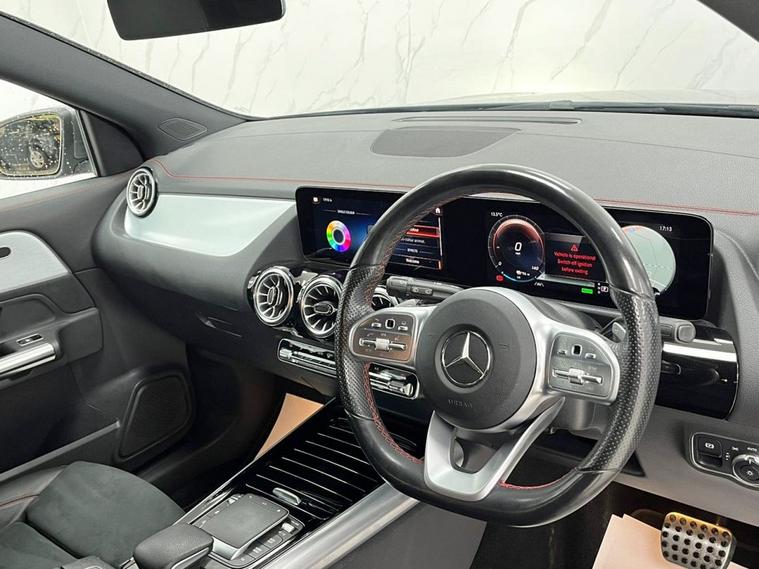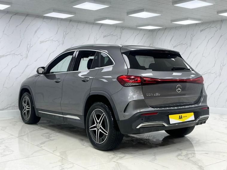 This 2021 Mercedes-Benz EQA 250 AMG Line boasts exceptionally low mileage for its age, having covered just 21, 406 miles, and has been owned by only one careful keeper. This electric vehicle, with a substantial 73 kWh battery, offers a maximum range of 262 miles when new, making it ideal for both daily commutes and longer journeys. Charging is convenient, with a full charge at home taking approximately 11 hours and 6 minutes using a 7kW charger, while rapid public charging can replenish the battery from empty to 80% in as little as 34 minutes. The vehicles MOT is valid until May 2026, and its history check is clear, providing peace of mind. The EQA 250 AMG Line is equipped with a suite of advanced features designed to enhance your driving experience. These include Blind Spot Assist with Exit Warning Function for added safety, and seamless Smartphone Integration with both Android Auto and Apple CarPlay. Enjoy your favourite music through the Mercedes-Benz Sound System, and navigate parking with ease thanks to the Parking Package featuring a reversing camera. The THERMOTRONIC automatic climate control ensures a comfortable cabin temperature in all conditions. These notable features, combined with its electric powertrain and the prestigious Mercedes-Benz brand, position this EQA as a superior choice compared to other vehicles in its class.