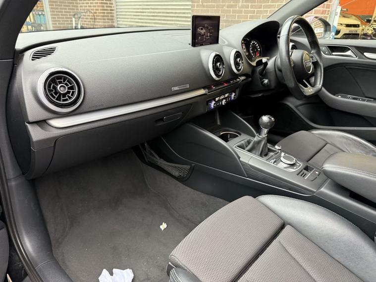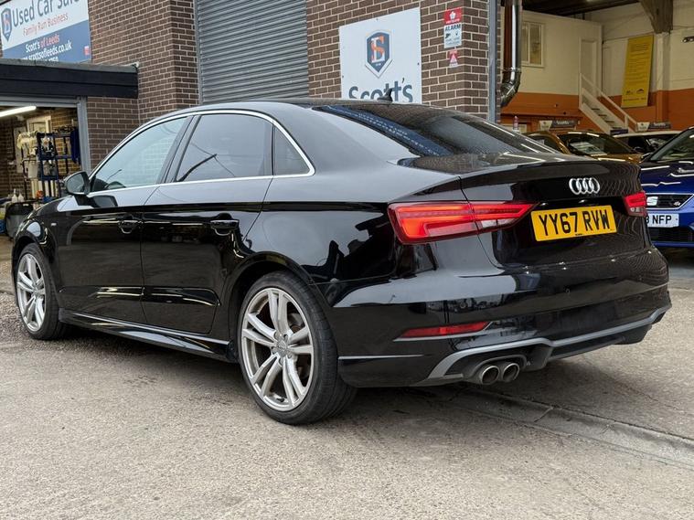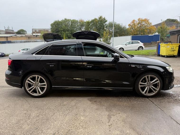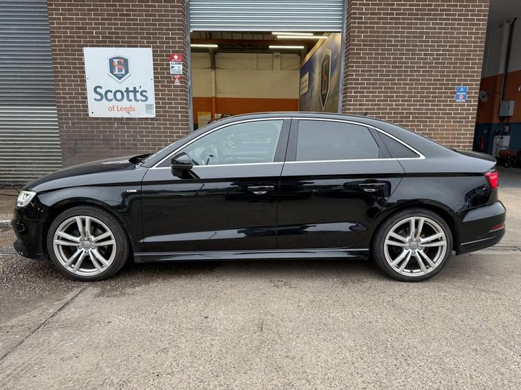 Scotts of Leeds Car Sales are pleased to offer this AUDI A3 1.5 TFSI CoD S line Saloon 4 Door Petrol Manual in Black. The car is in good condition throughout, in the best colour combination and a great specification including Satellite navigation, Apple car play, Bluetooth, Cruise control, DAB digital radio, Dual USB point, Parking sensors, Automatic lights & wipers, Aux point, Voice command, Privacy glass, Electric windows, 6 speed gearbox, Drivers armrest, Isofix, Alloy wheels and much much more. The car will be supplied with an up to date service record having just been serviced in our Workshop, an MOT until October 2026 and 2 Keys ready to drive away. The car has also had the TIMING BELT DONE in 2023. 3 MONTH NATIONWIDE WARRANTY provided with all vehicles. NATIONWIDE DELIVERY also available. A guaranteed 12 Months MOT can be added for an extra £100. DISCLAIMER: The above specification is true and correct. Any other specification listed elsewhere can sometimes be incorrect. Please check with Sales Executive to clarify this if needed prior to purchase.