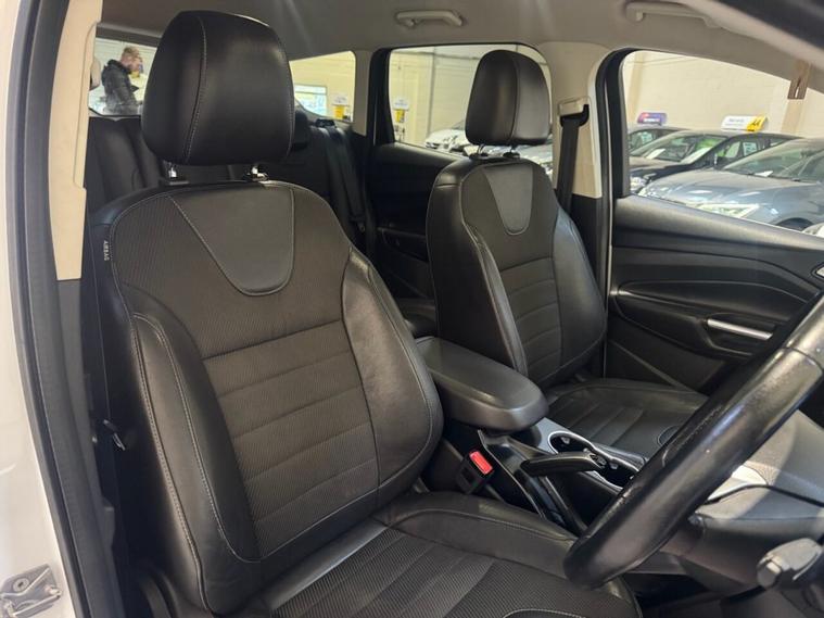For Sale: 2015 Ford Kuga 2.0 TDCi Titanium Practical, Efficient, and Packed with Premium Features Offered in a crisp White finish, this 2015 Ford Kuga Titanium combines comfort, space, and economy with a strong 2.0 TDCi diesel engine producing 150 PS. With just 66, 300 miles, this well-cared-for SUV is a great choice for families, commuters, or anyone needing a practical and refined vehicle with excellent fuel economy. Vehicle Highlights: Engine: 2.0L TDCi diesel engine delivering 150 PS with strong low-end torque and impressive economy Transmission: Smooth 6-speed manual gearbox Drivetrain: 2WD ideal for everyday efficiency with SUV styling and practicality Euro 6 Emissions Standard ULEZ compliant for cleaner urban driving Exterior Colour: Classic White with body-coloured bumpers, chrome trim, and Titanium badging Interior: Premium part-leather upholstery with a high-quality cabin finish and ambient lighting Infotainment: Ford SYNC with DAB radio, CD player, USB and AUX input, Bluetooth hands-free and audio streaming Comfort Features: Dual-zone climate control, cruise control with speed limiter, automatic headlights and rain-sensing wipers Convenience: Keyless start, electric handbrake, electric windows (front and rear), electrically adjustable mirrors Storage: Large boot capacity with split-folding rear seats for extended cargo space Wheels: 17-inch multi-spoke alloy wheels in great condition Safety & Assistance: Rear parking sensors, hill start assist, multiple airbags, ABS, ISOFIX points, and traction control Mileage: 66, 300 miles well below average for its age Running Costs: Excellent fuel economy (up to 60 MPG combined) and low road tax bracket Service History: Maintained to a high standard with service records available This Ford Kuga Titanium offers a smooth, confident ride with a high seating position and the premium spec youd expect from Fords Titanium trim level. Perfect for those needing extra space without compromising on comfort or efficiency. Viewings and test drives welcome. A reliable and stylish SUV that offers exceptional value for money.