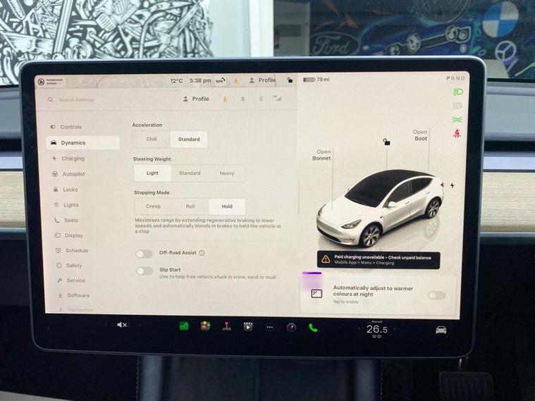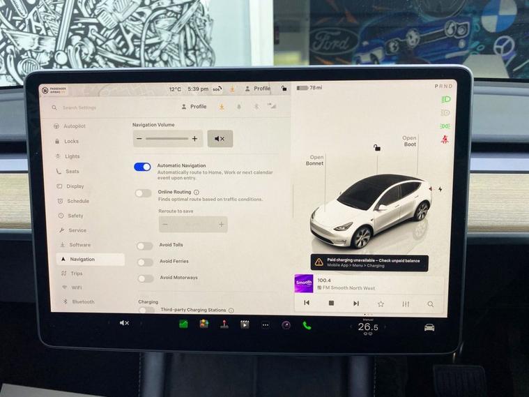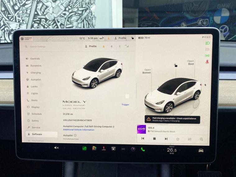 This 2022 Tesla Model Y Long Range has been cherished by just one owner since new, offering a superb example of this popular electric vehicle. As a Four Wheel Drive model, it combines impressive performance with the efficiency of electric power, boasting an 85 kWh battery that provides a maximum range of 331 miles when new. Charging is convenient, taking approximately 12 hours for a full charge at home using a 7kW charger, or a rapid 25 minutes to reach 80% charge at a public charging station. The vehicle is in excellent condition, with its MOT valid until September 2026. Notable features include an expansive glass roof with UV and IR protection, offering a panoramic sunroof experience, keyless entry and driving, Bluetooth connectivity for music and media, and bright LED headlights. The Tesla Model Y Long Range stands out with its exceptional capabilities. Its 0-60mph acceleration in just 4.8 seconds demonstrates its dynamic performance, a key advantage over many comparable vehicles. The generous boot space further enhances its practicality, making it ideal for families or those who need ample storage. The inclusion of a heated steering wheel adds a touch of comfort, particularly during colder months. This Model Y represents a compelling choice for those seeking a premium electric SUV with a blend of advanced technology, impressive range, and everyday usability.