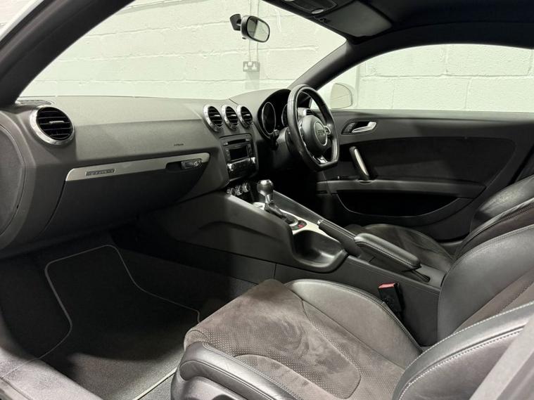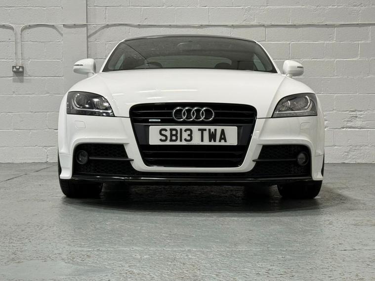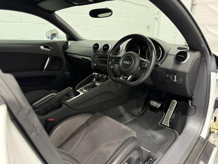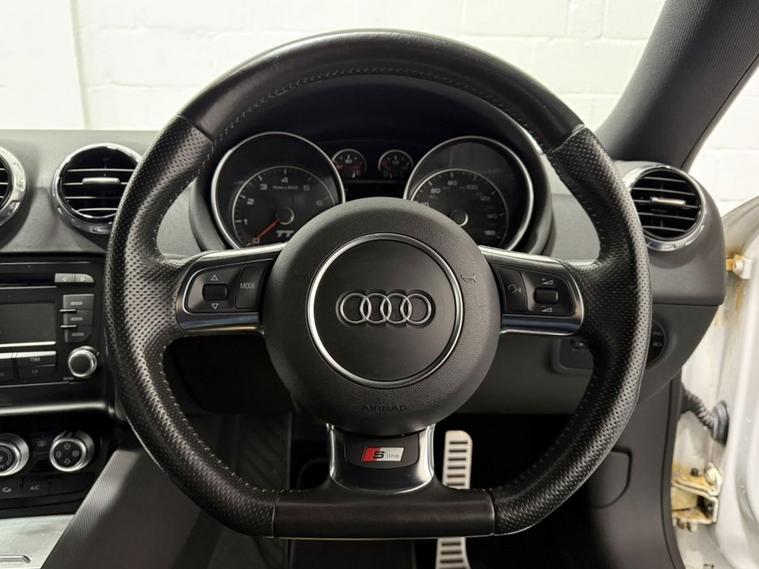 Finished in Ibis White with Perforated Alcantara - Leather Sports Seats in Black with S3 Embossed Interior. Features include 19 7 Twin Spoke Design Titanium Look Alloy Wheels, Sound Package, BOSE Surround Sound System, Audi Symphony Radio, Bluetooth Interface, iPod Connection, MP3 File Compatibility, FM / AM, CD, AUX, Driver Information System, Rear Parking Sensors, Electronic Climate Control, Rear Privacy Glass, Bi-Xenon Plus Headlights, LED Daytime Running Lights, Electrically Adjustable & Heated Door Mirrors, Brushed Aluminium Inlays, Black Styling Package, Retractable Spoiler, S Line Suspension, Electronic Differential Lock, ISOFIX, 3 Spoke Leather Multi-Function Flat Bottomed Steering Wheel with Gearshift Paddles, Automatic Transmission plus much more standard specification. This Audi TT Black Edition is offered in excellent condition having covered only 53949 miles from new by its 4 former keepers. The car comes complete with a service history consisting of the following - 20/08/2014 at 7104 miles, 15/08/2015 at 16765 miles, 24/09/2016 at 28036 miles, 12/05/2018 at 35916 miles, 07/05/2019 at 41472 miles, 24/10/2020 at 45747 miles, 01/11/2021 at 46385 miles, 28/09/2023 at 49983 miles, 21/10/2024 at 51945 miles, 28/11/2024 at 52203 miles HALDEX SERVICE and 14/10/2025 at 53947 miles. PLEASE CALL OR E-MAIL FOR FURTHER DETAILS OR TO ARRANGE A PERSONALISED VIDEO OR VIEWING.