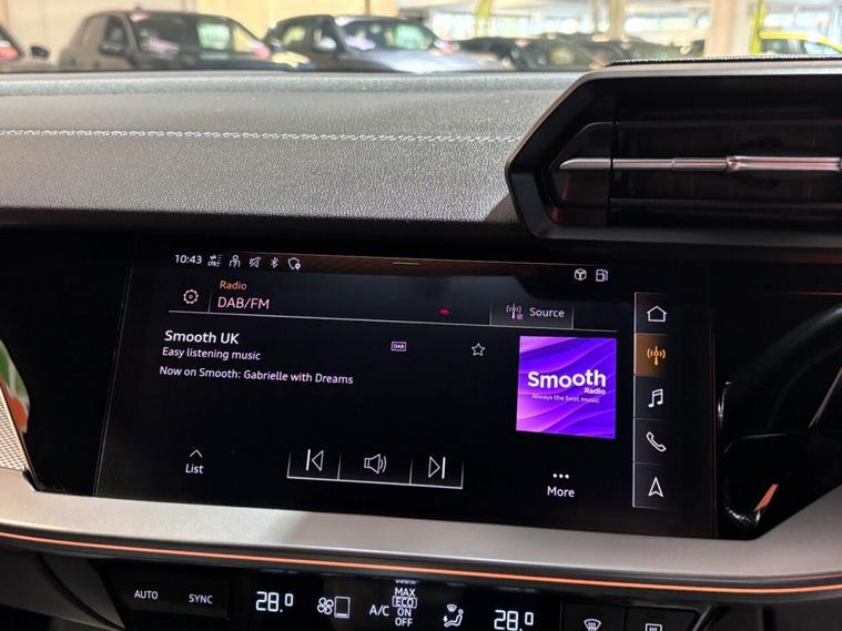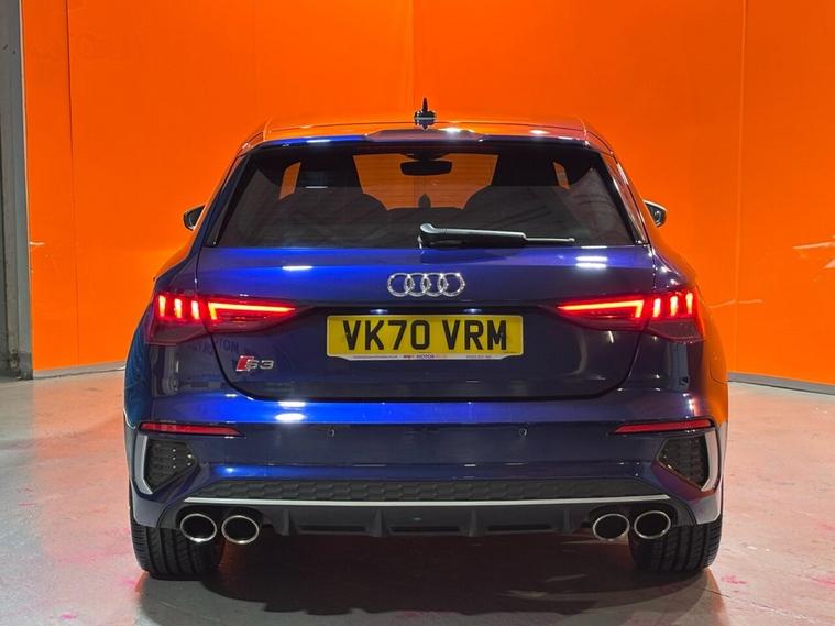 This 2020 Audi S3 TFSI offers an exhilarating driving experience with its impressive 0-60mph time of just 4.8 seconds. Powered by a potent 2.0 litre petrol engine and featuring Audis renowned four wheel drive system, this Euro 6 compliant model ensures dynamic performance and confident handling in all conditions. The S3 is equipped with advanced LED headlights and dynamic rear indicators, providing excellent visibility and a distinctive visual signature. Inside, youll find the convenience of Dual Zone Electronic Climate Control and the Audi Smartphone Interface, which seamlessly integrates your Apple CarPlay for easy access to navigation and entertainment. The inclusion of a Light and Rain Sensor, which automatically activates the headlights, and rear parking sensors further enhance the practicality and safety of this Audi S3. These features, combined with its brisk acceleration, demonstrate how this vehicle stands out from others in its class, offering a superior blend of performance, technology, and comfort for the discerning driver.