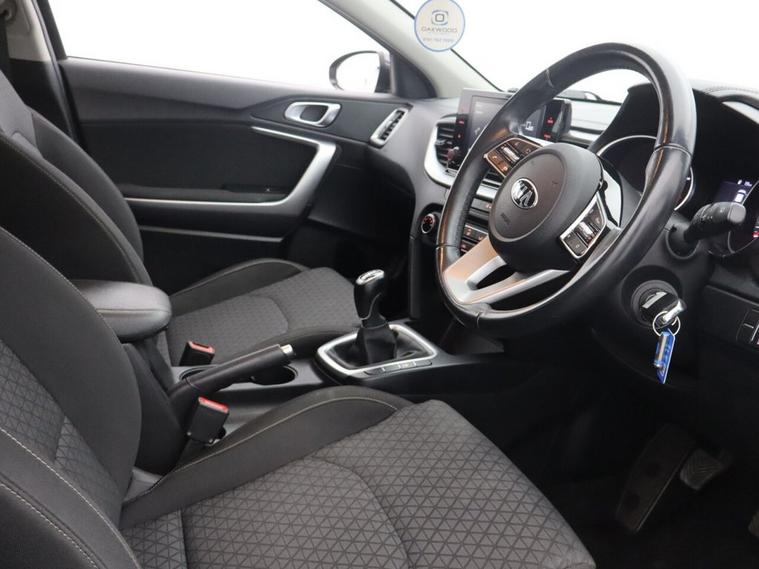 Oakwood Motor Company are delighted to offer this Kia XCeed 1.0 T-GDi 2 SUV 5dr, finished in the striking Dark Penta Metal. With just one owner from new, this stylish and practical SUV is designed for comfort and convenience, featuring 16-inch alloy wheels, silver roof rails, tinted glass, and electrically adjustable heated door mirrors. LED bi-function projection headlights, LED daytime running lights, and automatic headlight control ensure excellent visibility in all conditions. Inside, the cabin is both modern and well-equipped, with premium black cloth upholstery, an 8-inch touchscreen audio display, and a 4.2-inch supervision colour cluster display. Seamless smartphone connectivity is provided through Apple CarPlay and Android Auto with voice control, while the 7-speaker audio system and Bluetooth with voice recognition enhance the in-car experience. Steering wheel-mounted controls and air conditioning add to the comfort and ease of driving. This XCeed also comes with a range of advanced driver assistance features, including cruise control with a speed limiter, lane-keeping assist, hill-start assist, and a reversing camera system with dynamic guidelines for effortless parking. ISOFIX child seat fixings provide added security for families, making this SUV a perfect blend of practicality and style. With its impressive specification and efficient performance, this Kia XCeed 1.0 T-GDi 2 is a fantastic choice for those seeking a versatile and well-equipped crossover. Call our team today to arrange your viewing or test drive!