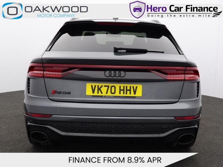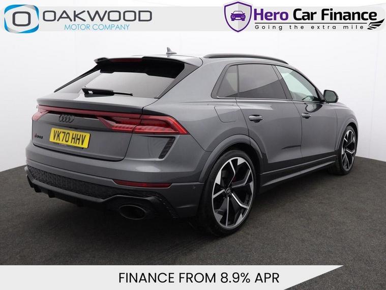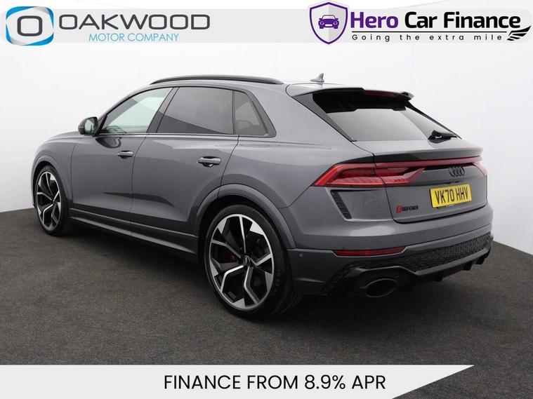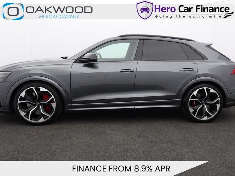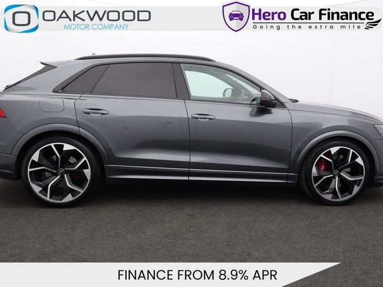 Oakwood Motor Company are delighted to offer this exceptional Audi RSQ8 4.0 TFSI V8 Vorsprung SUV, finished in the striking Daytona Grey. Boasting a full Audi service history, this high-performance SUV combines exhilarating power with cutting-edge technology and luxurious comfort. The exterior is enhanced by 23-inch 5-Y-Spoke Rotor Design alloy wheels in Gloss Anthracite Black with a Diamond Finish, black roof rails, carbon door mirrors, RS-specific styling, and a Titanium Black Styling Pack. The RS Sport Exhaust System, RS Adaptive Air Suspension, and quattro All-Wheel Drive with Sport Differential ensure an outstanding driving experience. Inside, the RS Front Super Sport Seats in perforated Valcona leather with RS embossing provide supreme comfort with seat ventilation, a massage function, and memory settings. Additional highlights include a panoramic glass sunroof, extended LED interior lighting, black Alcantara headlining, and power-operated doors with soft-close functionality. Technology is at the heart of this RSQ8, featuring Audi's Virtual Cockpit, MMI Navigation Plus, Audi Phone Box with wireless charging, and the premium Comfort and Sound Package. A host of advanced driver assistance systems, including Adaptive Cruise Assist, Audi Side Assist, a 360-degree camera, Park Assist, a Head-Up Display, and Audi Pre-Sense, ensure both convenience and safety. Completing this exceptional package are All-Wheel Steering, RS Steel Brakes with black calipers, and RS Coming-Leaving Home animations for a truly distinctive presence. Call our team today to arrange your viewing or test drive!