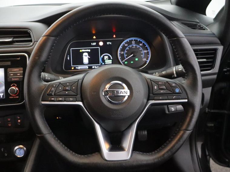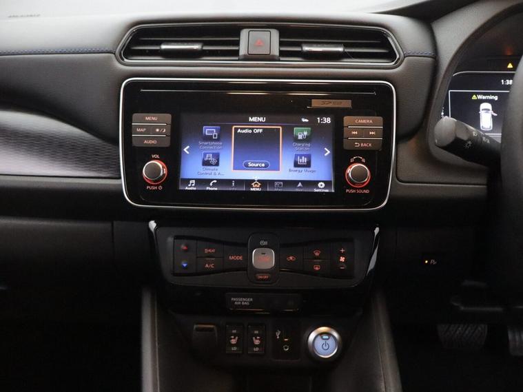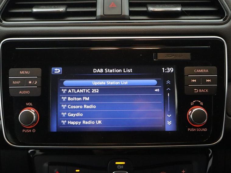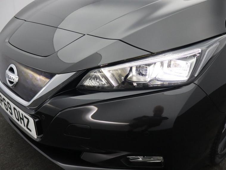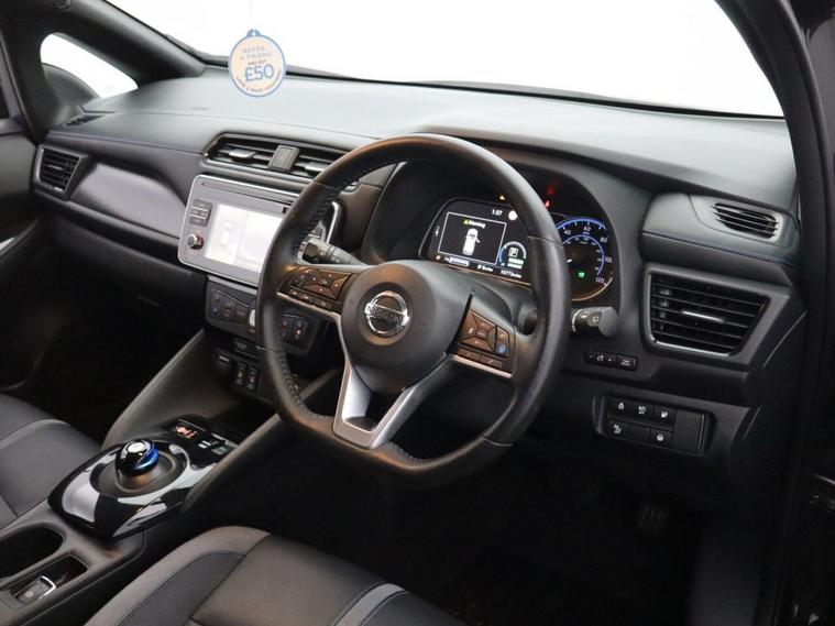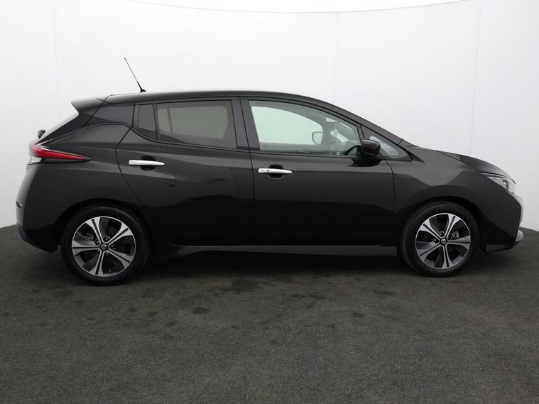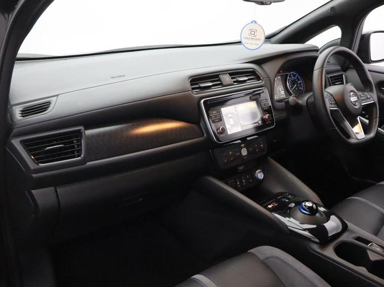 Oakwood Motor Company are delighted to offer this Nissan Leaf 40kWh Tekna Hatchback, finished in the sleek Pearl Black. With just one owner and low mileage, this fully electric hatchback delivers impressive efficiency, cutting-edge technology, and a premium driving experience. The refined interior features black leather with ultra-suede inserts, a leather D-shaped steering wheel, and automatic air conditioning for comfort in all conditions. Stay connected with the Nissan Connect EVO 8-inch touchscreen, BOSE premium audio system with seven speakers, DAB radio, Android Auto, and Apple CarPlay Preparation. The intelligent tech package includes ProPILOT, blind spot warning, lane departure warning, and intelligent emergency braking with pedestrian recognition for enhanced safety. Sitting on stylish 17-inch alloy wheels with gloss black B-pillars and rear privacy glass, this Leaf is as striking as it is efficient. LED signature daytime running lights, intelligent auto headlights, and a rearview camera add further convenience. Call our team today to arrange your viewing or test drive!