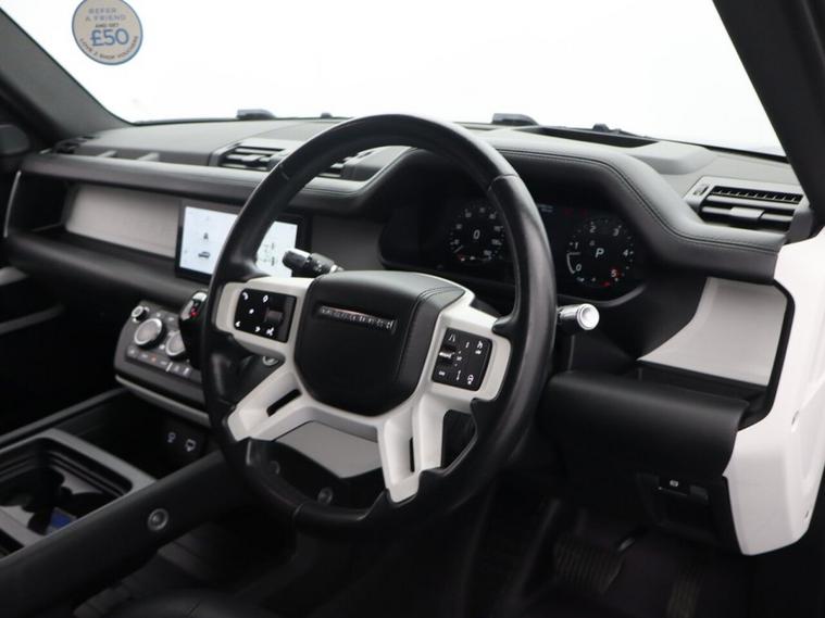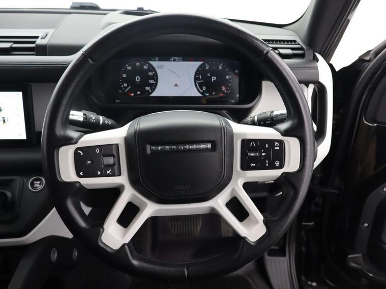 Oakwood Motor Company are delighted to offer this Land Rover Defender 3.0 D300 MHEV X-Dynamic HSE, finished in the commanding Santorini Black. This car has just had a full service including brake fluid change at Land Rover. Designed for both luxury and capability, this exceptional SUV combines rugged off-road performance with refined comfort and cutting-edge technology. Sitting on 20-inch Style 5098 alloy wheels with an extended black exterior pack, this Defender makes a bold statement. The X-Dynamic exterior styling, black roof rails, privacy glass, and a sliding panoramic roof add to its striking presence. Matrix LED headlights with signature DRL, a heated windscreen, and automatic headlights with rain-sensing wipers ensure visibility in all conditions. Inside, the cabin is crafted with Windsor Leather-Robustec upholstery in Ebony and features 14-way heated and cooled electric memory front seats with 4-way manual headrests. The heated steering wheel, Ebony Morzine headlining, and illuminated metal treadplates enhance the premium feel. A 10-inch Pivi Pro touchscreen, interactive driver display, Meridian Sound System, Apple CarPlay, and Android Auto provide seamless connectivity and entertainment. Performance is supported by electronic air suspension, a twin-speed transfer box, and Hill Descent Control, ensuring exceptional capability on and off the road. Safety and driver assistance features include a 3D surround camera, 360-degree parking aid, Adaptive Cruise Control, Blind Spot Assist, Lane Keep Assist, and Traffic Sign Recognition with an Adaptive Speed Limiter. Additional conveniences such as keyless entry, an assisted soft-close tailgate, and electric cabin pre-conditioning complete this outstanding package. Call our team today to arrange your viewing or test drive!