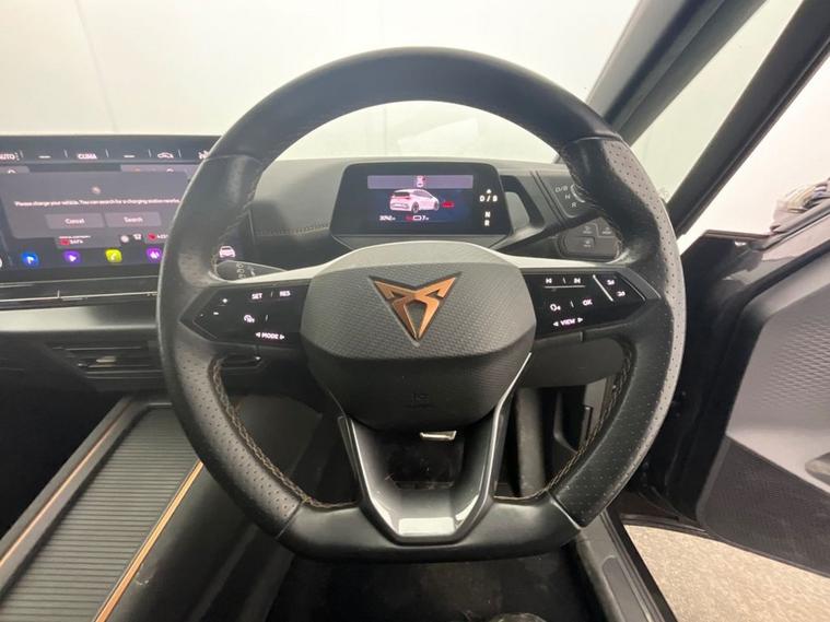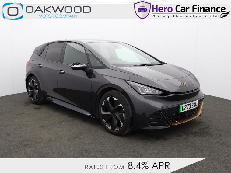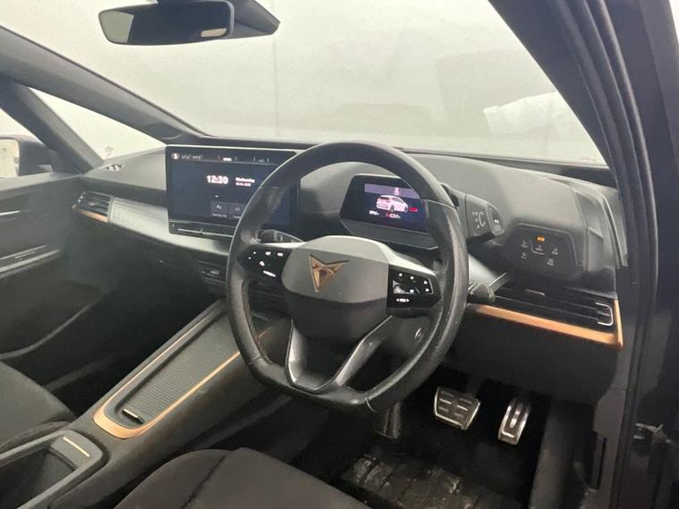 Oakwood Motor Company are delighted to offer this striking CUPRA Born 58kWh V2, finished in an eye-catching design that blends performance, efficiency, and cutting-edge technology. With just one owner from new, this all-electric hatchback delivers an exhilarating yet sustainable driving experience, featuring a 120kW DC charging capacity for rapid recharging and seamless long-distance capability. Step inside to discover a premium cabin equipped with a 5.3-inch digital cockpit, a 12-inch central infotainment display, and wireless Full Link smartphone integration for seamless connectivity. The seven-speaker audio system, DAB radio, and multiple USB-C ports ensure high-quality entertainment, while Climatronic dual-zone air conditioning and multi-coloured ambient lighting create a refined and comfortable atmosphere. Heated front seats and a leather-wrapped multifunction steering wheel with integrated controls enhance driving pleasure. The exterior styling is bold and distinctive, featuring 19-inch machined Typhoon alloy wheels, dark tinted rear windows, and grey electrically adjustable, folding, and heated door mirrors. Full LED headlights with the Welcome Home and Adverse Weather function provide superior visibility, while sports rear shock absorption ensures a dynamic and engaging drive. The augmented reality head-up display adds a futuristic touch, keeping key driving information within your line of sight. Advanced safety and driver assistance features include Forward Collision Warning with automatic braking, Lane Assist, and Park Distance Control for front and rear manoeuvring. The Keyless-Go central locking system and ISOFIX mounting points in the outer rear seats add practicality for everyday use, while Driving Profile Selection allows you to tailor the car's performance to your preference. Call our team today to arrange your viewing or test drive!