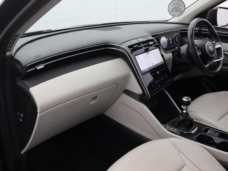 This 2021 Hyundai TUCSON T GDi Ultimate boasts a clear vehicle history and has had only one owner, offering peace of mind for its next custodian. Powered by a 1.6 litre petrol engine and meeting Euro 6 emissions standards, this Ultimate trim model combines practicality with premium features. Enjoy seamless connectivity with Bluetooth, and experience enhanced comfort with the drivers electric seat adjustment that includes a memory function. The expansive panoramic glass sunroof, which offers electric tilt and slide functionality, floods the cabin with light, while the wireless phone charging pad adds modern convenience. For those chilly journeys, the outer rear seats are heated, ensuring comfort for all passengers. The generous boot space in this TUCSON makes it an ideal choice for families or anyone needing ample storage, outperforming many vehicles in its class. Furthermore, its placement in a low insurance group means that running costs are kept impressively low, making it an economical and sensible option. With a long MOT, this Hyundai TUCSON T GDi Ultimate is ready for many miles of enjoyable driving.