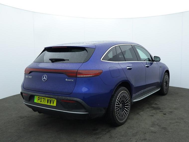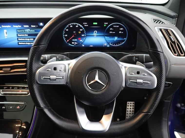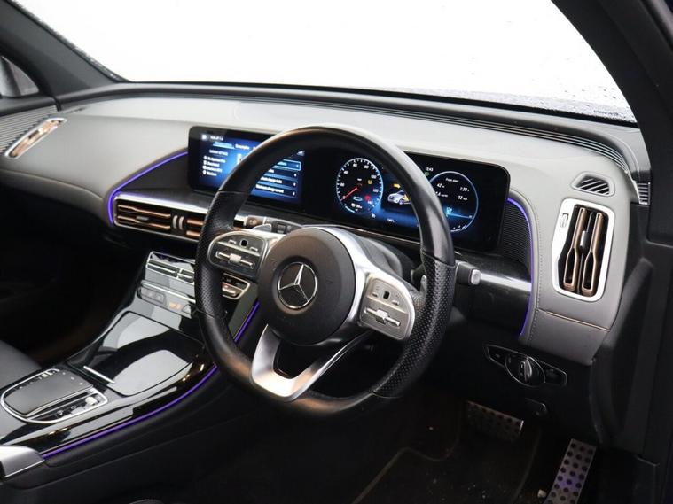 This 2021 Mercedes-Benz EQC 400 AMG Line (Premium) boasts a clear vehicle history and a long MOT, offering peace of mind for its next owner. As an all electric, four wheel drive SUV, it combines advanced technology with impressive performance. The AMG Line trim enhances its sporty appeal, while features like the Parking Package with Parking Assist PARKTRONIC and Rear Camera, Blind Spot Assist, and KEYLESS-GO Comfort Package ensure convenience and safety. Enjoy an open and airy cabin with the Electric Sliding Sunroof and brilliant visibility at night thanks to the MULTIBEAM LED Headlights. Experience the thrill of instant acceleration with the EQC 400, reaching 0-60mph in a swift 5.1 seconds, a performance that sets it apart from many other electric vehicles. With a substantial 88 kWh battery, you can expect a maximum range of 245 miles when new, and charging is efficient, taking approximately 12 hours and 13 minutes at home using a 7kW charger, or a rapid 45 minutes from empty to 80% at a public charging station. This Mercedes-Benz also offers generous boot space, making it a practical choice for everyday life and longer journeys.