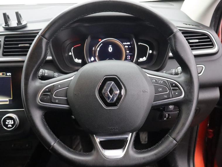 This 2019 Renault Kadjar TCe Iconic boasts a clear vehicle history check, offering you peace of mind. This stylish SUV is equipped with a 1.3L Euro 6 petrol engine, ensuring it meets current emission standards. The Iconic trim level comes with a host of convenient features, including the R Link 2 Multimedia System with a 7in touchscreen and Bluetooth connectivity. Youll also benefit from hands free keycard access with a walk away lock function, automatic dual zone climate control, and seamless integration with Apple CarPlay and Android Auto. Parking is made easier with front and rear parking sensors. Experience impressive fuel economy with this Kadjar, achieving up to 44 miles per gallon, which indicates it is more economical than many similar vehicles. Its low CO2 emissions further highlight its efficiency compared to other cars in its class. Furthermore, youll appreciate the generous boot space, providing ample room for all your luggage and shopping needs. With a long MOT, this Renault Kadjar is ready for your next adventure.