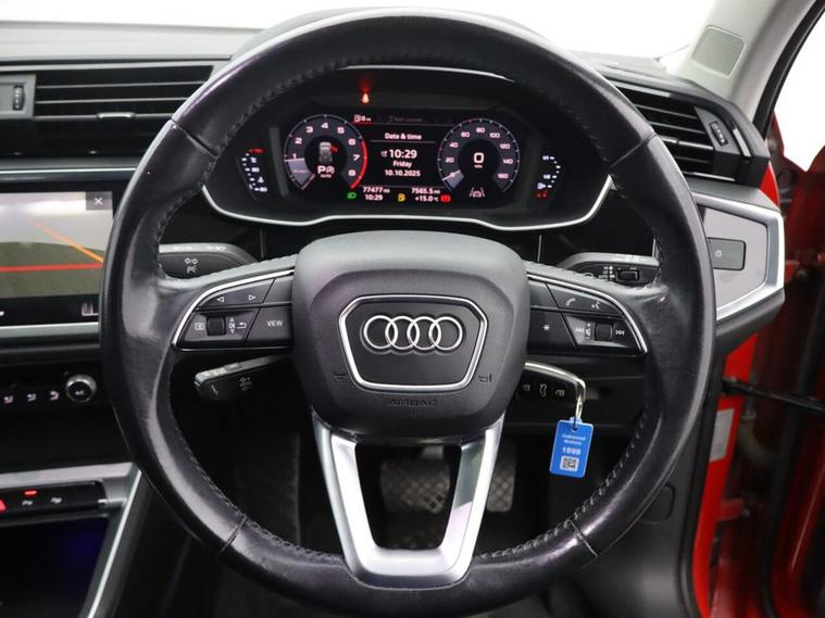 This 2019 Audi Q3 TFSI Sport boasts a long MOT, offering you peace of mind for years to come. This stylish SUV features a 1.5 litre petrol engine, meeting Euro 6 emissions standards and contributing to its low CO2 emissions. The Sport trim includes desirable features such as 18 inch alloy wheels with a diamond cut finish, a panoramic glass sunroof that opens for an airy cabin feel, and privacy glass for added discretion. Experience a responsive drive with the Q3s 0-60mph acceleration in just 9.1 seconds, a performance that places it favourably against similar vehicles. The advanced parking pack, complete with a 360 degree camera, makes manoeuvring effortless, while LED headlights with daytime running lights and dynamic rear indicators ensure excellent visibility and a modern aesthetic. This Audi Q3 TFSI Sport combines practicality with sophisticated features for an enjoyable driving experience.