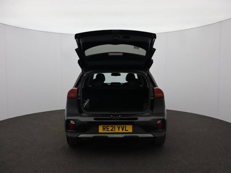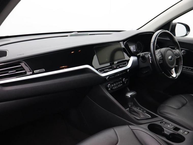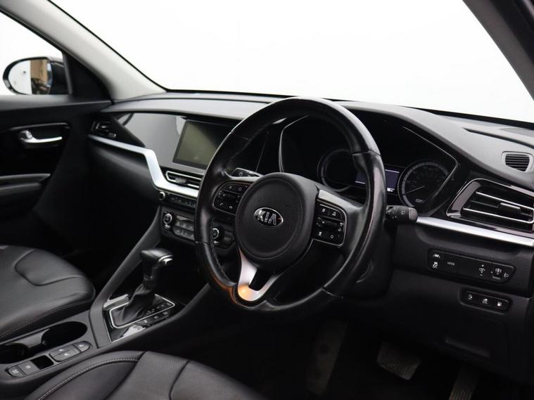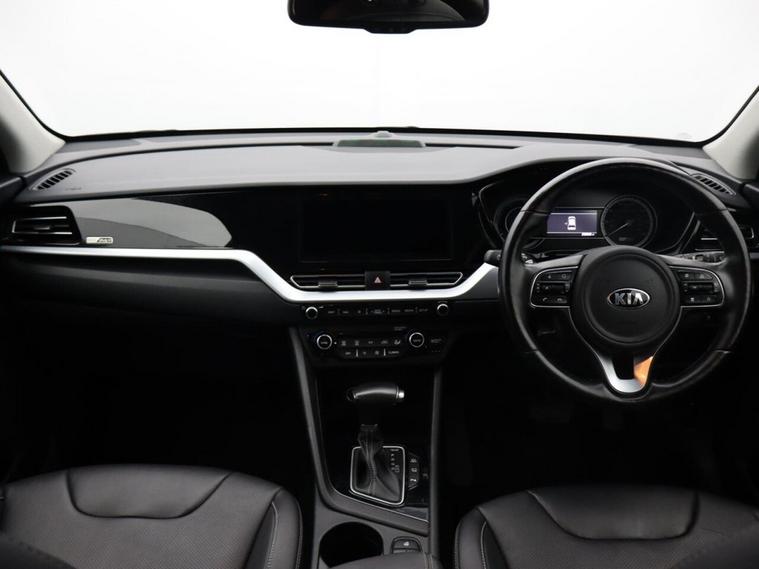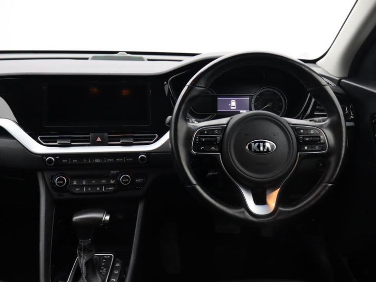 Oakwood Motor Company are delighted to offer this Kia Niro 1.6 GDi 8.9kWh 3 SUV, finished in a sophisticated Black. This one-owner hybrid SUV delivers efficiency, practicality, and premium features, making it the perfect choice for both urban and long-distance driving. With 16-inch alloy wheels, a matt black radiator grille, privacy glass, and sleek roof rails, the Niro offers a bold yet refined road presence. Inside, advanced technology takes center stage with a 10.25-inch touchscreen satellite navigation system, Android Auto and Apple CarPlay with voice control, and a wireless phone charger for seamless connectivity. The 4.2-inch supervision cluster with LCD TFT colour display keeps vital information within easy view, while the six-speaker system and DAB radio ensure an enjoyable driving experience. Comfort is paramount, with an 8-way power-adjustable driver's seat featuring lumbar support, heated front seats, and a heated leather-trimmed steering wheel with paddle shift. Dual automatic air conditioning, an auto-dimming rear-view mirror, and an automatic windscreen de-fog function enhance convenience and driving comfort. On the road, the Kia Niro delivers a smooth and confident drive with adaptive smart cruise control, drive mode select with Eco and Sport modes, and hill-start assist control. Safety is a priority with lane follow assist, lane keep assist, ISOFIX child seat fixings, and both front and rear parking sensors complemented by a reversing camera system. LED daytime running lights, automatic headlights, and rain-sensing wipers provide enhanced visibility in all conditions. Call our team today to arrange your viewing or test drive!