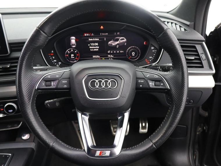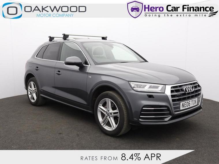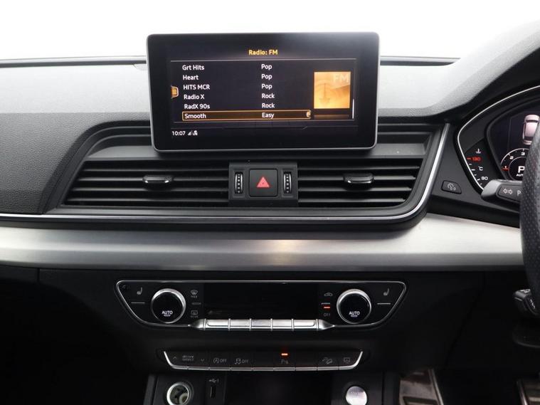 Oakwood Motor Company are delighted to offer this Audi Q5 2.0 TDI 40 S line SUV, finished in the striking Daytona Grey, a premium shade that enhances its bold and sporty design. Combining luxury, technology, and performance, this SUV is built to impress. Inside, the black leather-Alcantara sports seats with Rock Grey stitching provide exceptional comfort, complemented by a perforated leather multi-function steering wheel with S badging and gear-shift paddles. The MMI navigation system preparation, Audi Smartphone Interface, Bluetooth, DAB radio, and Audi Sound System ensure seamless connectivity and entertainment. The deluxe 3-zone climate control and LED interior lighting pack enhance the premium cabin feel. The exterior features 19-inch 5-twin-spoke star design diamond-cut alloy wheels, S line body styling, privacy glass with acoustic glazing, aluminium roof rails, and a power-operated tailgate for added convenience. LED headlights with high-beam assist and dynamic rear indicators offer excellent visibility, while the high-gloss package adds to the sleek aesthetic. Equipped with dynamic suspension, Audi Drive Select, and cruise control with a speed limiter, this Q5 delivers a smooth and responsive drive. Safety features include Audi Pre-Sense City, Audi Parking System Plus, hill descent control, hill hold assist, and ISOFIX child seat mounting. The technology package further enhances its cutting-edge capabilities. Offering a perfect blend of refinement, performance, and practicality, this Audi Q5 S line is an outstanding choice. Call our team today to arrange your viewing or test drive!