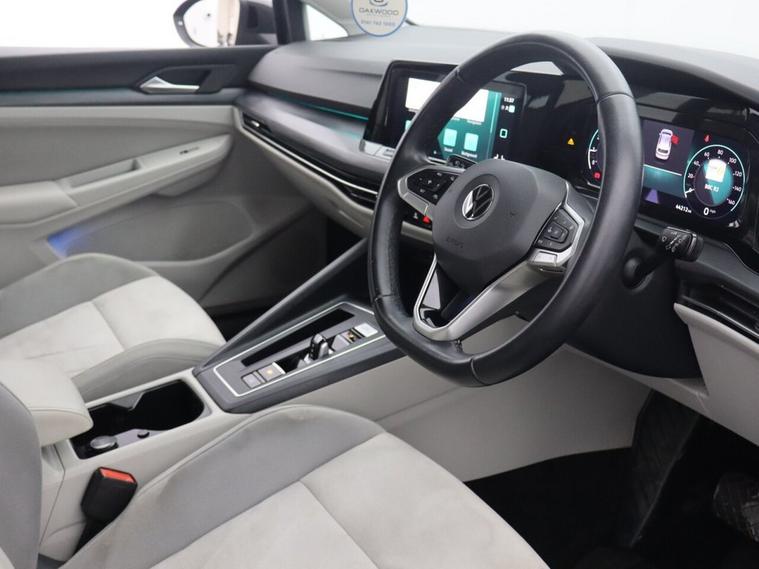 Oakwood Motor Company are delighted to offer this sleek Volkswagen Golf 1.5 eTSI MHEV Style Hatchback, finished in the refined Urano Grey. With just one owner from new, this mild hybrid model blends cutting-edge technology, modern styling, and low-emission efficiency into a premium hatchback experience. Inside, the Golf offers a sophisticated cabin featuring Art Velours seat centre sections with microfibre cloth side bolsters in Storm Grey. The front sport seats come with height and lumbar adjustment, and the three-zone electronic climate control ensures comfort throughout the cabin. Ambient lighting and the Digital Cockpit Pro enhance the sense of modern luxury, while keyless start adds to the convenience. Technology is a highlight, with the Discover Navigation infotainment system, touch-sensitive controls, wireless smartphone charging, and App-Connect all included. The car also comes equipped with We Connect Plus preparation and Car2X vehicle networking for a smarter, more connected drive. On the exterior, 17-inch Belmont alloy wheels, an illuminated front grille, LED Plus headlights, and a black rear diffuser give the Golf a distinctive presence. Added practicality includes front and rear parking sensors, a tailgate-integrated roof spoiler, and electrically adjustable, heated, and folding door mirrors. Safety and driver assistance features include Adaptive Cruise Control, Dynamic Road Sign Display, ISOFIX child seat preparation, high beam assist, dusk sensor lighting, and the optional Winter Pack with heated outer rear seats, adding extra comfort for passengers on colder days. This stylish and efficient Golf offers premium features, reliable performance, and outstanding value. Call our team today to arrange your viewing or test drive!