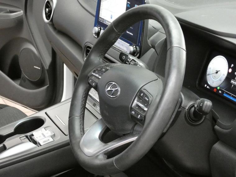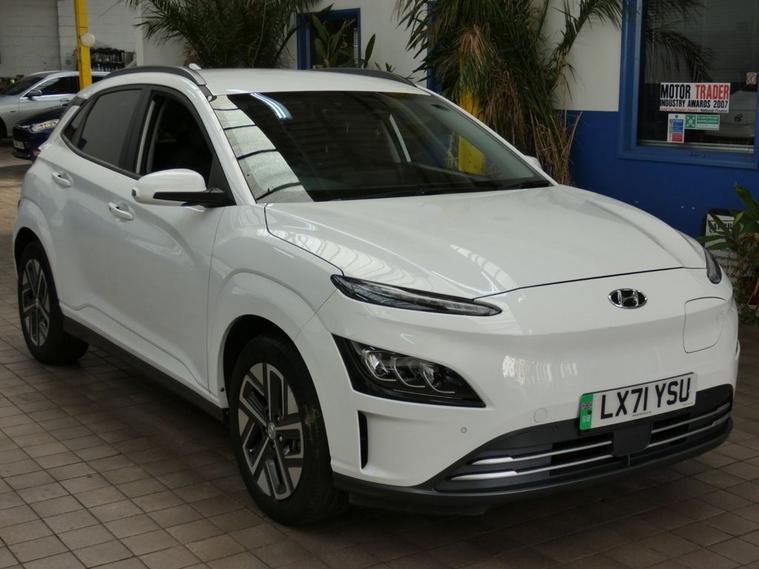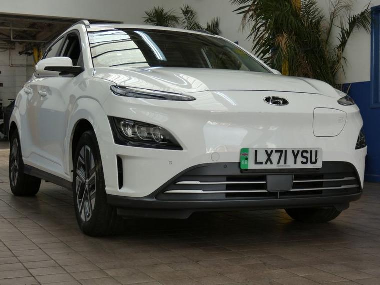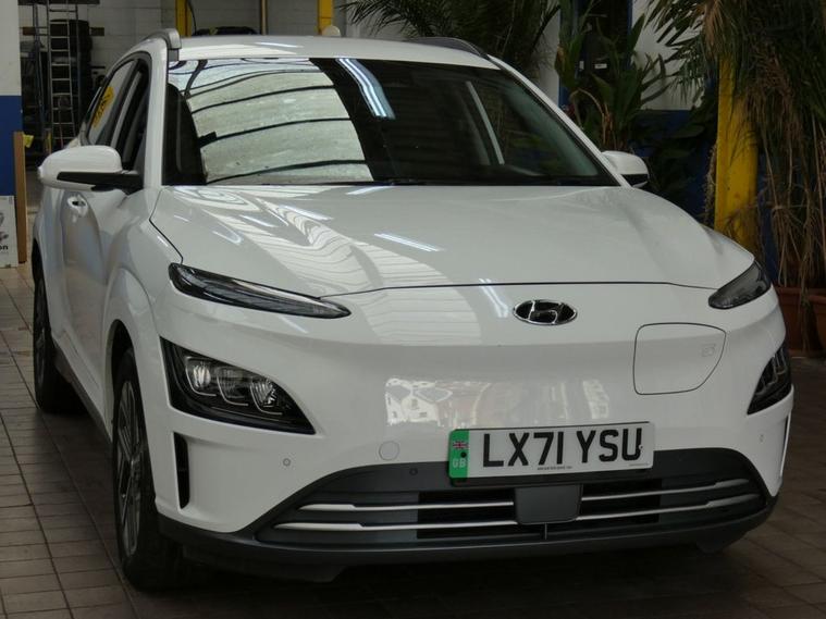 This 2021 Hyundai KONA Premium Electric boasts exceptionally low mileage for its age, having covered just 21, 290 miles, and has been cherished by only one owner. Excellent service history 4 services to 21, 254 miles Sept 2025, Mot till Sept 2026, Hyundai warranty till Sep 2026, This well appointed electric SUV offers a substantial battery total capacity of 64 kWh, providing a maximum range of 300 miles when new. Driving is made easier with a rear camera and guidance system, complemented by sat nav, android apple carplay, cruise control, Comfort is enhanced by heated front seats, and convenience is at your fingertips with a wireless phone charging pad. Automatic headlights with a dusk sensor ensure optimal visibility, adapting to changing light conditions. The impressive 300 mile range highlights how this KONA stands out, offering considerable distance on a single charge. For those longer journeys, the fastest public charging time from empty to 80% is a swift 53 minutes, while a full charge at home using a 7kW charger takes approximately 10 hours and 16 minutes. These charging times demonstrate the practicality of this electric vehicle for both daily commutes and extended trips, making it a compelling choice for those seeking an efficient and feature rich electric car. Autoinfusion Ltd, is a family run business with over 30 years motoring experience. On our website you will find our vehicles are generally advertised with upto 100 exterior and interior pictures, 360 interior images, exterior panoramic views and web video showcasing our stock. As an AA approved garage, prior to sale, the majority of our vehicles are inspected by an AA trained technician and pass a full 128 multi-point AA inspection, these cars are highlighted on our website with the AA logo. Please note AA inspections are also available on request if the vehicle has not yet been inspected. All of our stock is constantly price checked ensuring you pay and receive the best package. You will also find details of special promotions on our website. Contact us to book an appointment for a viewing and test drive. We can conduct a live viewing of the vehicle to your mobile device or send you a personalised video highlighting the key features or anything else you may require, which can be viewed in your own time. With our Finance options we can provide class leading packages and rates. We highly recommend you reserve this car on-line , please visit dealer's website or call one of our sales specialists for more information. We look forward to welcoming you to Autoinfusion.