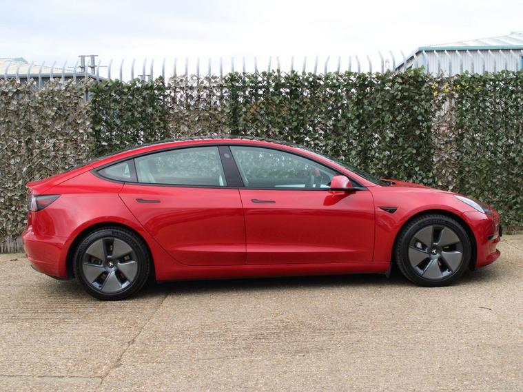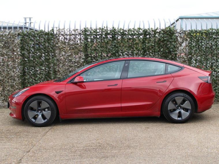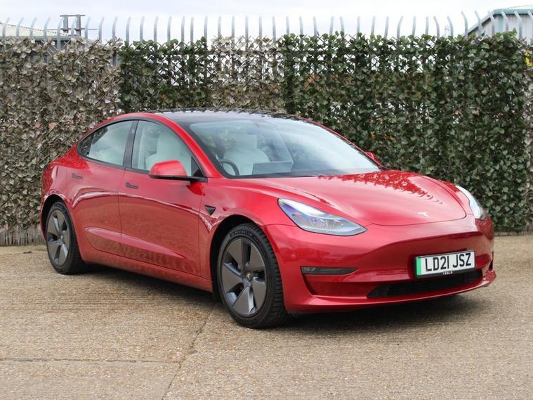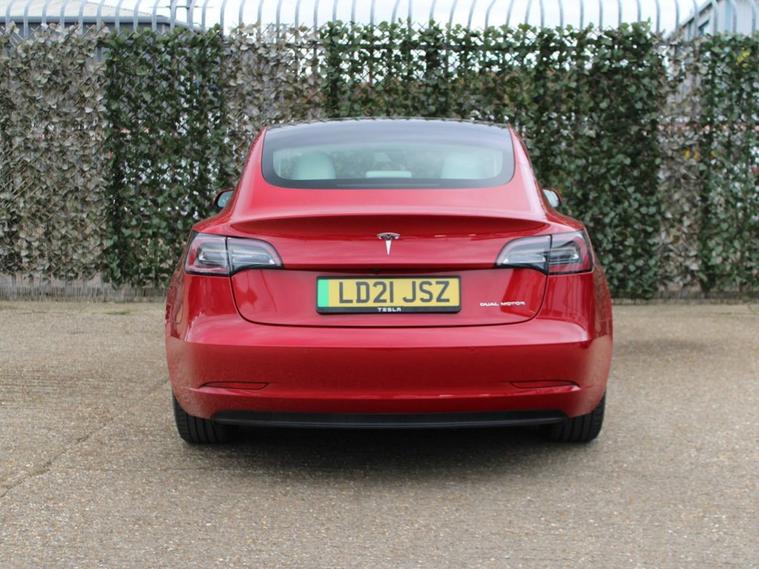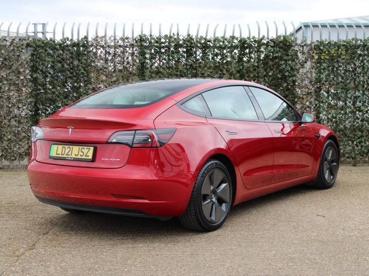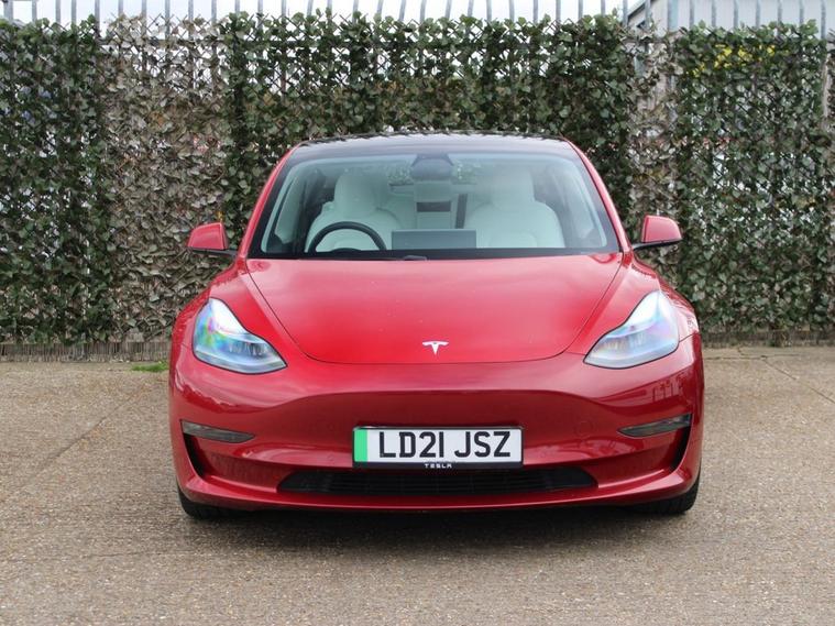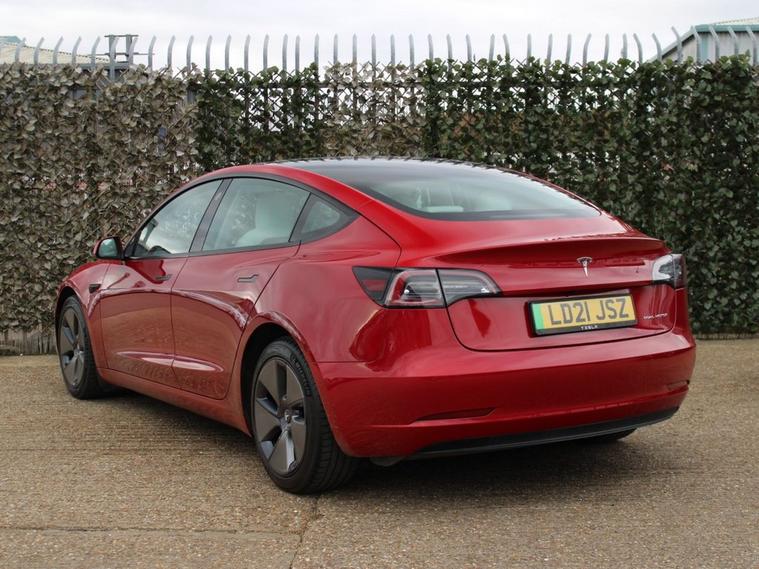 **90.9% BATTERY HEALTH** WHITE LEATHER INTERIOR ** This 2021 Tesla Model 3 Long Range is a superb example, having had only one owner since new. As an electric vehicle with Four Wheel Drive, it offers an impressive battery maximum range of 360 miles, a significant advantage for longer journeys. Charging is convenient, taking approximately 12 hours at home with a 7kW charger, or a rapid 26 minutes to reach 80% charge at a public charging station. Inside, youll find a premium black and white interior crafted from engineered materials, along with two inductive charging mats for smartphones and advanced air conditioning. Safety and convenience are enhanced by Blind Spot Information with assistance and a Park Assist camera system, including a front camera. The Long Range variant of this Tesla Model 3 stands out with its exceptional 360 mile range, demonstrating its capability to cover greater distances between charges compared to many other electric vehicles. This model also boasts a large boot space, offering practical storage solutions for everyday needs and travel. The combination of its electric powertrain, advanced technology, and generous range makes this Model 3 a compelling choice for those seeking an efficient and well equipped vehicle.