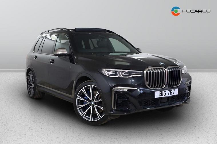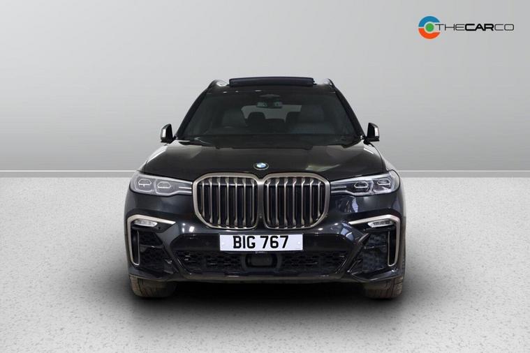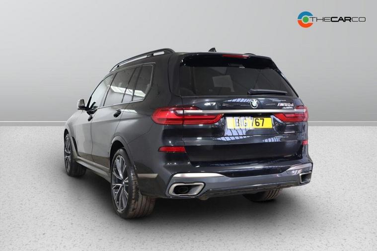 This 2021 BMW X7 M50d presents an exceptional opportunity with its remarkably low mileage of just 32, 003 miles for its age. This impressive four wheel drive, seven seater SUV is powered by a potent 3.0 litre diesel engine, meeting Euro 6 emissions standards. It boasts a substantial towing weight of 2600 kg and offers generous boot space, making it incredibly practical. The Technology Package enhances your driving experience with Blind Spot Assistance, a Head Up Display, and a premium branded sound system. Further elevating comfort and style are the Panorama Glass Roof Sky Lounge and a Panoramic Glass Sunroof, both featuring an opening function. The BMW Live Cockpit Professional, complete with Bluetooth connectivity, and the Loudspeaker System from Harman Kardon, further underscore the premium nature of this vehicle. The performance of this X7 M50d is truly noteworthy, achieving 0-62mph in a swift 5.4 seconds, a figure that highlights its dynamic capabilities compared to many other vehicles in its class. This combination of exhilarating acceleration, advanced technology, luxurious comfort features like the expansive glass roof options, and the practicality of seven seats and significant towing capacity, positions this BMW X7 M50d as a superior choice for those seeking a premium and versatile SUV.