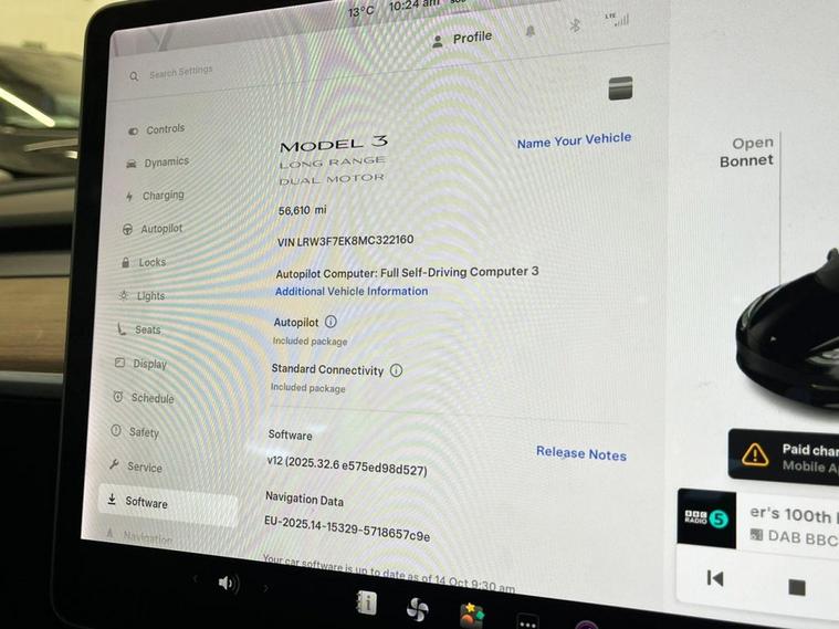 This 2021 Tesla Model 3 Long Range is a superb example, having had only one owner since new. As an electric vehicle with Four Wheel Drive, it offers an impressive battery maximum range of 360 miles when new, powered by a 78 kWh battery. Charging at home on a 7kW charger takes approximately 12 hours for a full charge, while rapid public charging can take it from empty to 80% in just 26 minutes. This Model 3 comes with a 36 month warranty and its MOT is valid until May 2026, offering peace of mind. Notable features include heated front seats, Keyless Go for effortless entry and starting, Bluetooth connectivity for your devices, and a 2 Zone Climate Control system to keep everyone comfortable. Parking is made easier with rear parking sensors. The Long Range variant of the Tesla Model 3 stands out with its exceptional electric performance and extensive driving range, indicating it is better equipped for longer journeys than many comparable electric vehicles. The 360 mile maximum range at new is a significant advantage, allowing for fewer charging stops. The combination of Four Wheel Drive and the substantial 78 kWh battery ensures a smooth and powerful driving experience. This particular vehicles single owner provenance and long MOT validity further enhance its appeal as a well cared for and reliable electric car.
