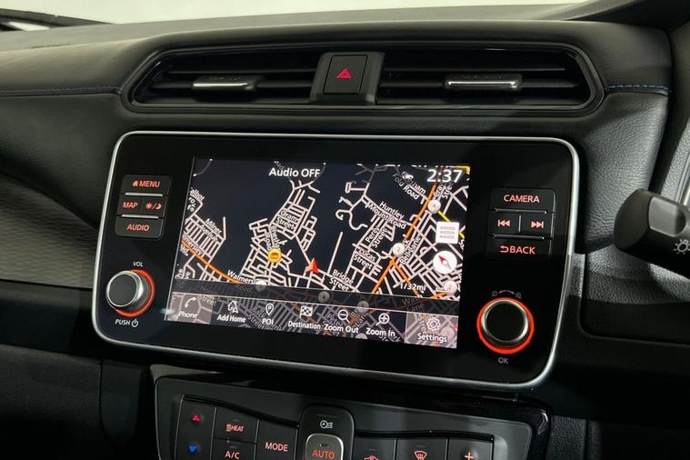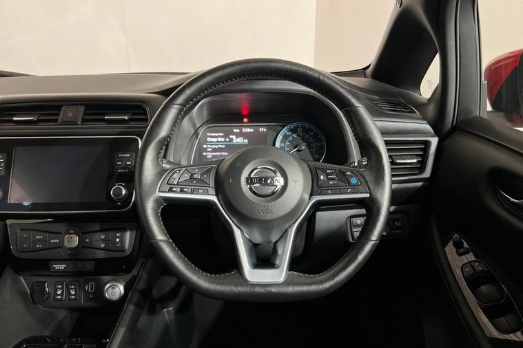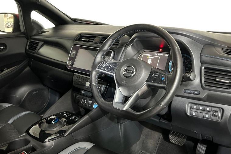 With an incredibly low mileage of just 8086 miles for its 2020 registration, this Nissan Leaf e+ Tekna represents exceptional provenance. As a single owner vehicle with a clear history check and an MOT valid until February 2026, it offers peace of mind. This electric hatchback boasts a substantial 62 kWh battery, providing an impressive maximum range of 239 miles when new. Charging is convenient, taking approximately 11 hours and 30 minutes from home using a 7kW charger, or a rapid 2 hours for an 80% charge at a public charging station. Experience a responsive drive with the Nissan Leaf e+ Tekna, capable of accelerating from 0 to 60mph in a swift 6.9 seconds, a highlight that sets it apart from many electric vehicles. The generous boot space ensures practicality for everyday needs. This model is equipped with advanced technology, including Android Auto and Apple CarPlay for seamless smartphone integration, and Blind Spot Warning for enhanced safety. Intelligent Auto Headlights with a Follow Me Home function, Nissan i Key for keyless entry, and Intelligent Cruise Control further elevate the driving experience, making this Leaf a compelling choice for those seeking efficiency and modern features.