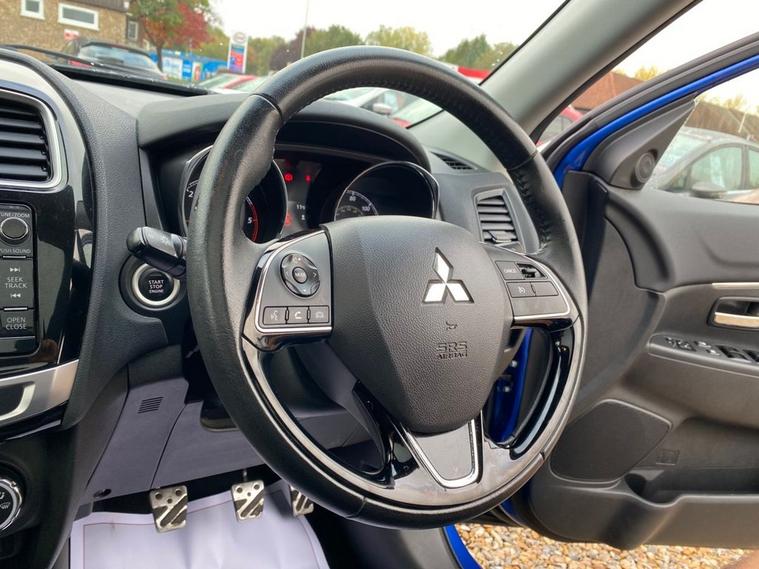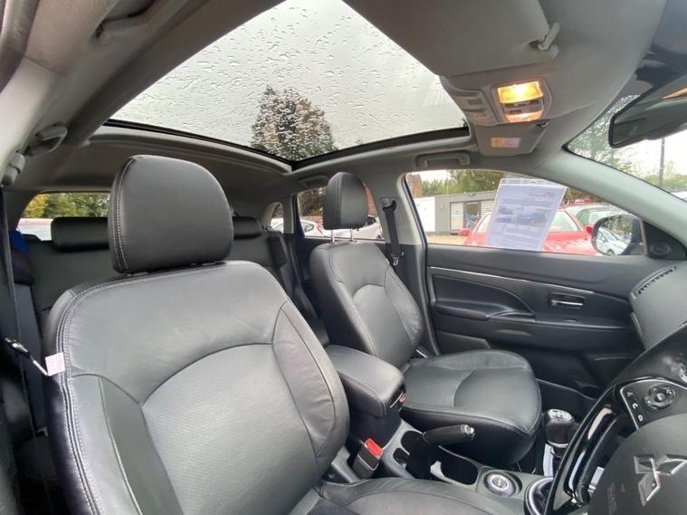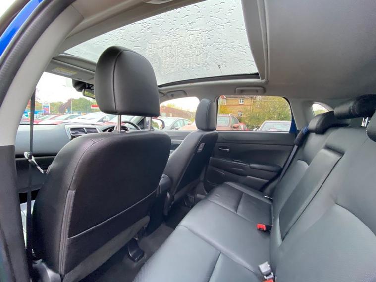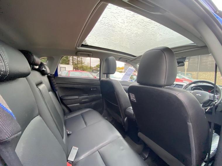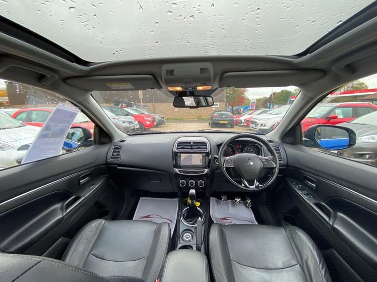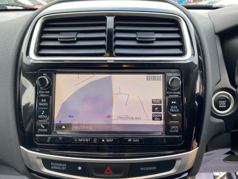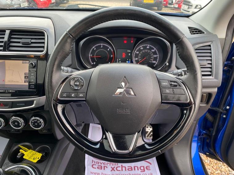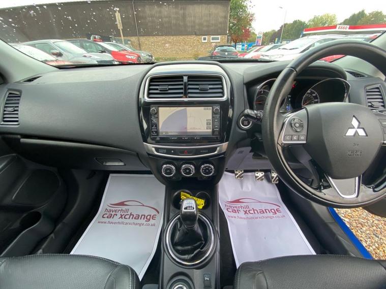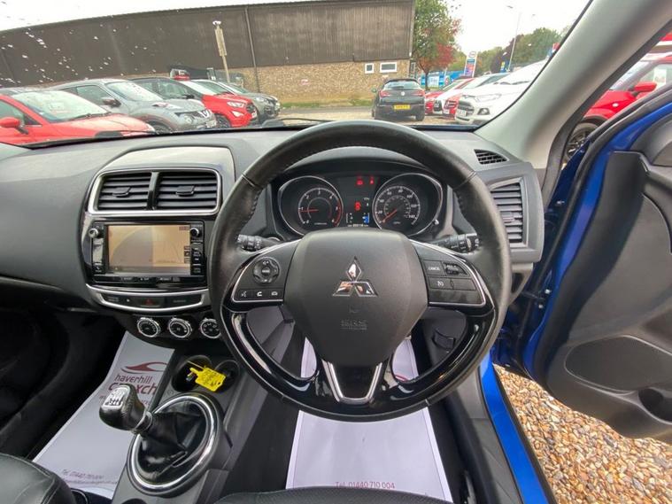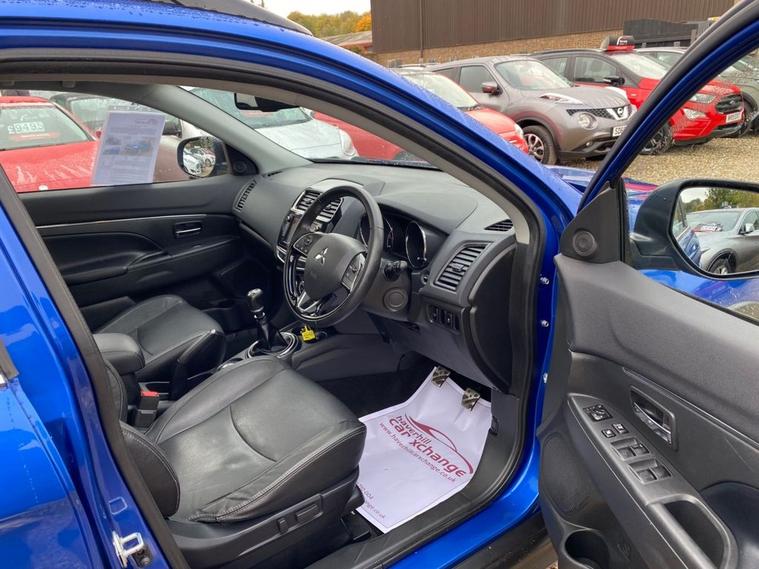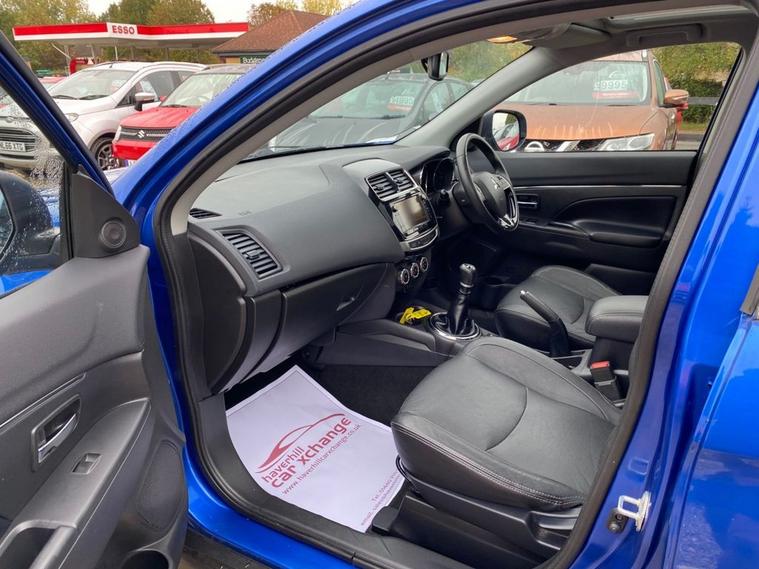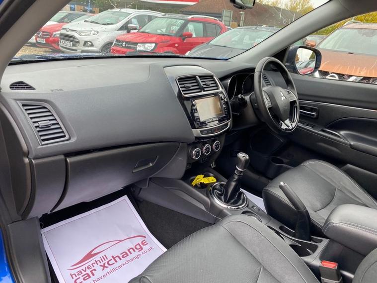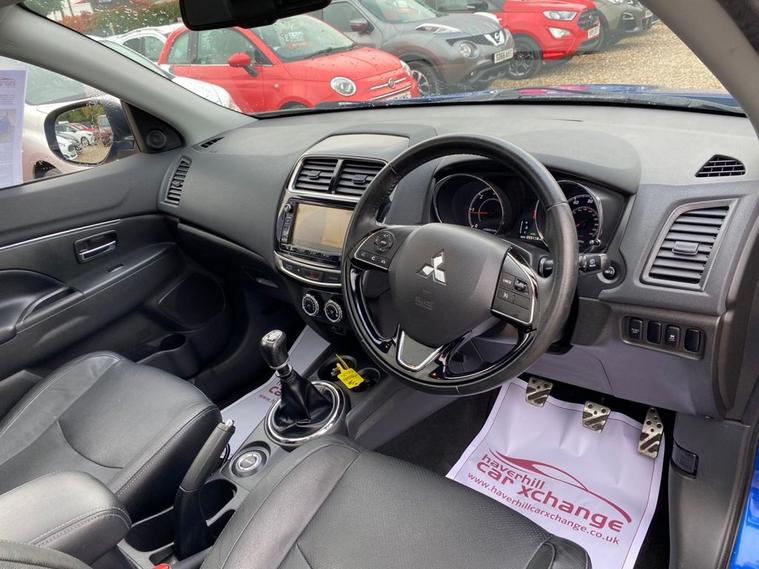 ONLY 55, 115 MILES+COLOUR SCREEN SATELLITE NAVIGATION SYSTEM+BLUETOOTH WITH MUSIC STREAMING+CLIMATE CONTROL AIR-CONDITIONING+HEATED SEATS+AUTOMATIC HEADLIGHTS WITH SENSOR+PANORAMIC GLASS ROOF+FRONT & REAR PARKING ASSISTANCE WITH PARKING CAMERA+METALLIC LIGHTNING BLUE PAINT+18 INCH ALLOY WHEELS. At Haverhill Car Xchange we would like to offer you our LOW MILEAGE Mitsubishi ASX SUV which has been finished in a metallic Lightning Blue paint with luxurious HEATED Black Leather upholstery. Specification Includes a Colour Satellite Navigation System, DAB Digital RADIO-CD-MP3 Compatibility, Bluetooth with Music Streaming, iPod Compatibility, USB Port, 12 Volt Power Socket, Climate Control Air-Conditioning, Cruise Control, Front and Rear Electric Windows, Gear Shift Indicator, Body Coloured Bumpers/Door Handles and Door Mirrors with Integrated Side Indicators, Front Silver Skid Plates, Automatic Headlights with Sensor, Daytime Running Lights, Follow-me-Home Headlight Function, High Mounted Break Light, Front and Rear Fog Lights, Auto Dimming Rear View Mirror, Panoramic Glass Roof, Front and Rear Parking Assistance with Parking Camera, Multifunction Steering Wheel, Privacy Glass, Engine Start/Stop Button, 18 Inch Alloy Wheels, Power Steering, Hill Start Assist, Brake Assist, Airbags, Alarm, Immobiliser, Remote Central Locking and ISOFIX Anchorage Points for Child Seats.