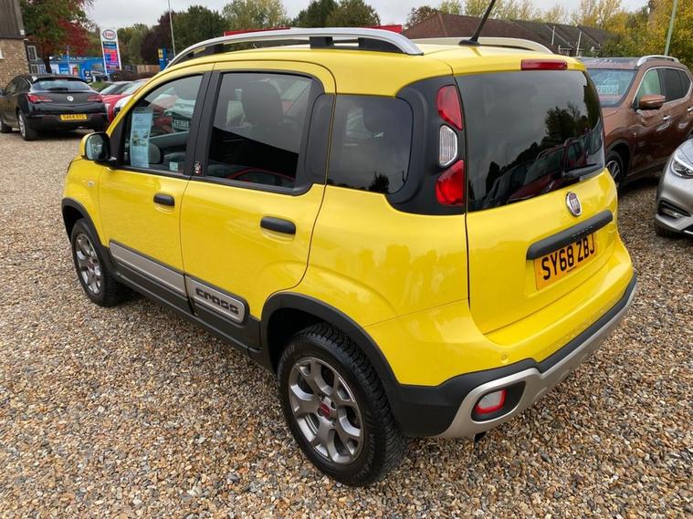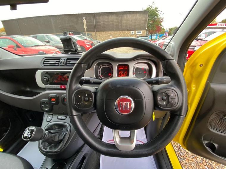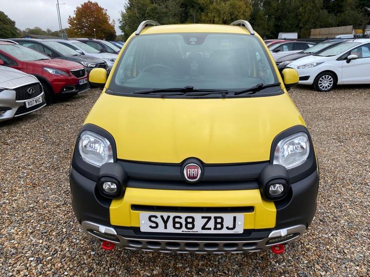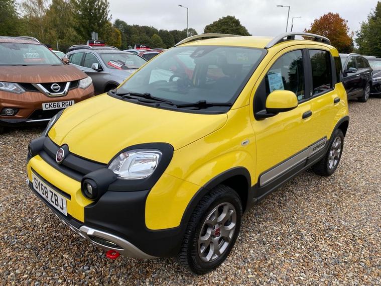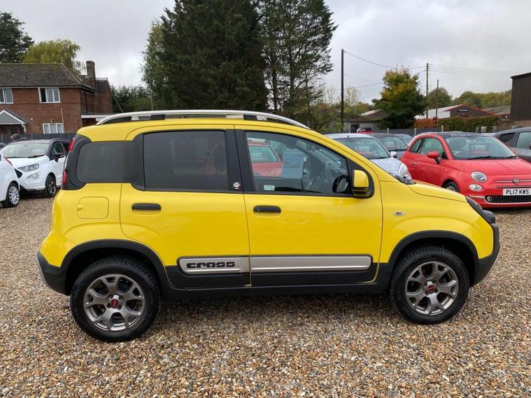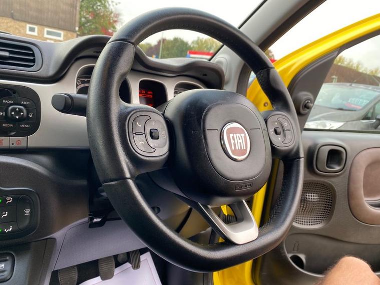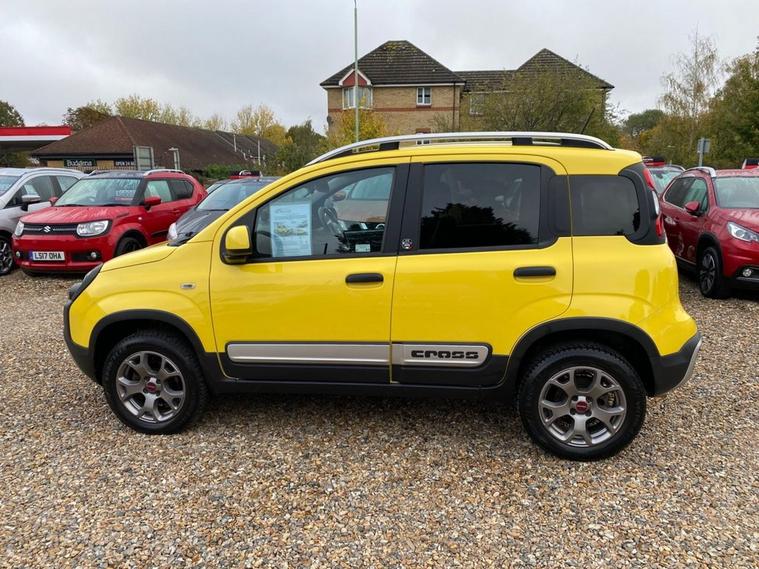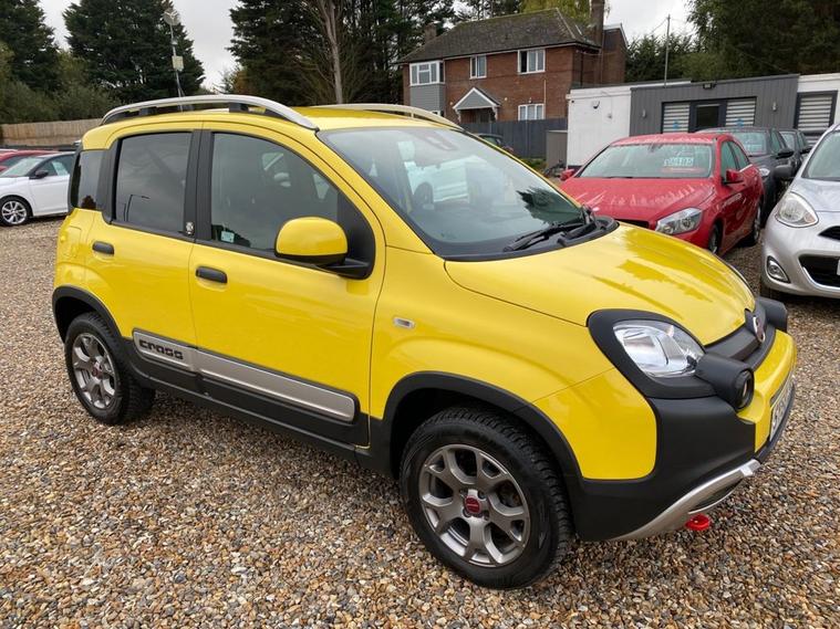 ONLY 20, 248 MILES+£1, 800 OF FEATURES+LONG MOT UNTIL 21.09.2026+DAB RADIO+BLUETOOTH+AIR-CONDITIONING+WINTER PACK+COMFORT KIT+HALF LEATHER UPHOLSTERY+PARKING ASSISTANCE+TROPICALLA YELLOW PAINT+15 INCH ALLOY WHEELS. At Haverhill Car Xchange we would like to offer you our EXTREMELY LOW MILEAGE Fiat Panda TwinAir Cross Hatchback which has been finished in a Tropicalla Yellow paint with luxurious Grey-Brown half leather and cloth upholstery. Specification Includes DAB Radio, Bluetooth and Smartphone Cradle, USB, AUX-IN, 12 Volt Power Socket, Automatic Climate Control Air-Conditioning, Front Electric Windows, Body Coloured Door Mirrors, Black Door Handles, Front and Rear Bumpers with Ultrashine Silver Skid Plates, Side Strips in ultrashine Silver Cross Logo, Ultrashine Roof Bars, Front Fog Lights, Comfort Kit, Winter Pack, Parking Assistance, Tinted Windows, 15 Inch Alloy Wheel, City Break Control, All Terrain Selector, Dualdrive Power Steering, Hill Holder, ABS Breaking System, Airbags and Remote Central Locking.