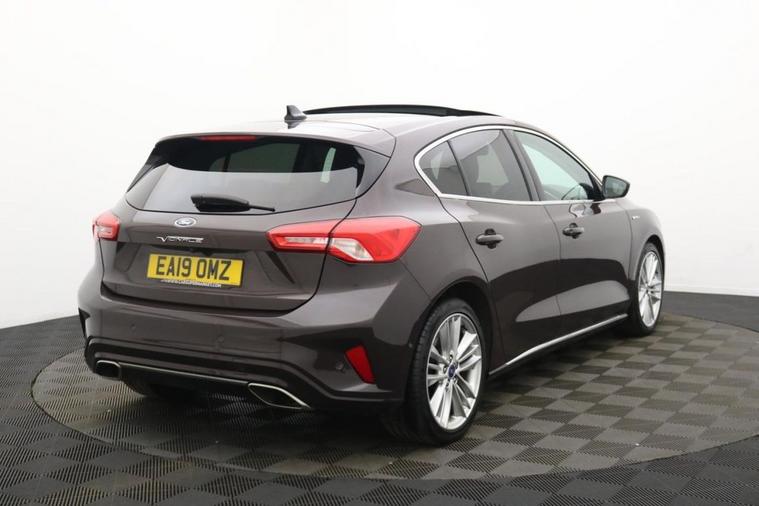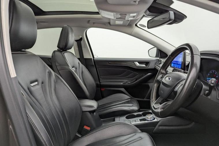 Henson Car Store presents the FORD FOCUS 1.5T EcoBoost Vignale Hatchback 5dr Petrol Auto Euro 6 (s/s) finished in Purple, this car comes with the rare optional sliding panoramic glass roof. Experience premium comfort and refined performance with this 2019 Ford Focus Vignale the flagship trim in the Focus range, combining luxury, technology, and efficiency. Powered by a 1.5-litre EcoBoost petrol engine paired with a smooth automatic gearbox, it delivers a responsive and efficient drive while meeting Euro 6 emissions standards, ensuring both performance and environmental responsibility. The Vignale model offers an exceptional level of refinement, featuring full leather upholstery with contrast stitching, heated and electrically adjustable front seats, and Fords SYNC 3 infotainment system with Apple CarPlay and Android Auto integration. A premium B&O sound system enhances the in-car experience, while front and rear parking sensors with a reversing camera make manoeuvring effortless. Safety and convenience are further improved with adaptive cruise control, lane-keeping assist, and traffic sign recognition. Externally, the Focus Vignale stands out with its LED headlights, distinctive chrome detailing, and exclusive Vignale badging, complemented by stylish 18-inch alloy wheels. Inside, the cabin is quiet, spacious, and meticulously finished, providing first-class comfort for both driver and passengers. Combining the practicality of a five-door hatchback with the sophistication and comfort of a premium car, this Ford Focus Vignale delivers an outstanding driving experience perfect for those who appreciate style, refinement, and everyday usability in one complete package.