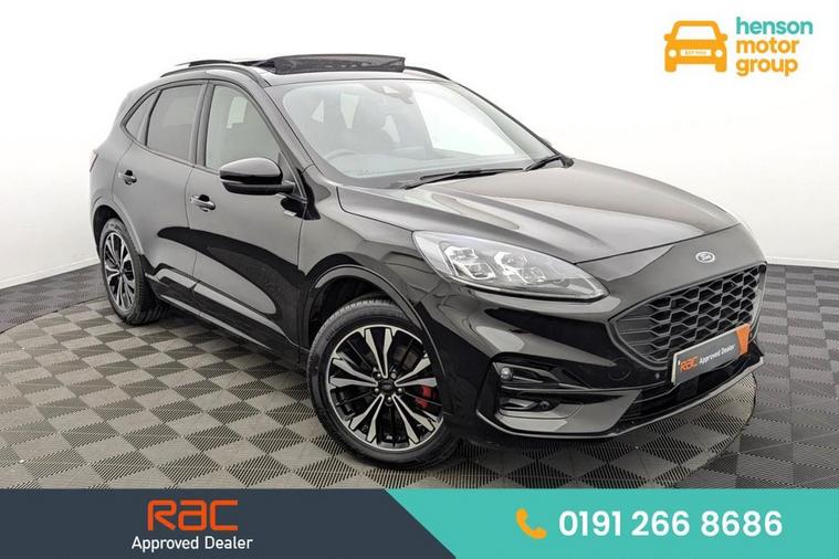 Henson Car Store presents the FORD KUGA 2.5 Duratec 14.4kWh ST-Line X Edition SUV 5dr Petrol Plug-in Hybrid CVT Euro 6 (s/s) finished in Black, this car comes with service history and is VAT qualifying. Discover the perfect blend of performance, efficiency, and style with this 2022 Ford Kuga ST-Line X Edition. Powered by a 2.5-litre Duratec petrol engine paired with a 14.4kWh plug-in hybrid system and smooth CVT automatic transmission, it delivers a refined and efficient driving experience while meeting Euro 6 emissions standards. The plug-in hybrid technology allows for impressive fuel economy and the ability to drive on electric power alone for shorter journeys, making it ideal for both city commuting and longer trips. The ST-Line X Edition elevates the Kuga with a sporty and premium appearance, featuring sleek exterior styling, distinctive alloy wheels, and a striking profile that stands out on the road. Inside, the cabin is thoughtfully designed with high-quality materials, offering a comfortable and practical environment for driver and passengers alike. Advanced technology is seamlessly integrated, including a touchscreen infotainment system with smartphone connectivity, digital instrument cluster, and driver-assist features to enhance safety and convenience. With its versatile five-door SUV layout, generous interior space, and plug-in hybrid efficiency, this Ford Kuga ST-Line X Edition delivers a sophisticated and practical driving experience. It combines dynamic performance, cutting-edge technology, and modern styling, making it an excellent choice for those seeking a premium, eco-conscious SUV.