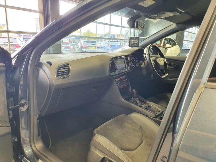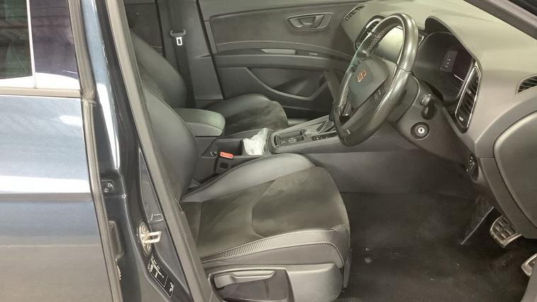 - Flat Bottomed-Perforated Leather Steering Wheel with White Stitching and CUPRA Logo