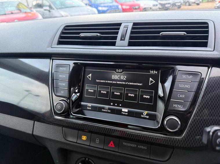 This 2018 Skoda Fabia TSI Monte Carlo boasts a clear vehicle history check, offering you peace of mind. This stylish hatchback is equipped with a 1.0 litre Euro 6 petrol engine, ensuring it meets modern emission standards. Inside, youll find manual air conditioning for your comfort, a Bolero radio with Bluetooth connectivity for seamless audio streaming, and acoustic parking sensors at the rear to aid with manoeuvring. Adding a touch of elegance and light to the cabin is the fixed panoramic glass roof. The Skoda Fabia TSI Monte Carlo is designed to be economical and efficient, achieving an impressive fuel economy of up to 64 miles per gallon. Its low CO2 emissions and low insurance group rating further contribute to its affordability, making it a sensible choice for many drivers. With a 0 to 60 miles per hour acceleration time of 10.3 seconds, it offers a responsive driving experience. This vehicle also comes with a 6 month warranty and its MOT is valid until May 2026.