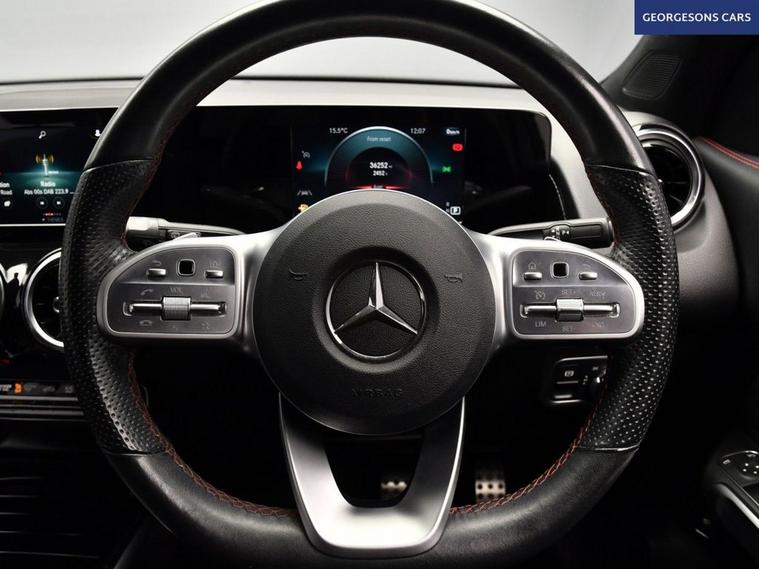 The Mercedes-Benz GLB 1.3 GLB200 AMG Line combines a responsive 1.3-litre turbo petrol engine with 163hp, delivering 0-62mph in 9.1 seconds and up to 45.6mpg in this front-wheel-drive setup with a smooth 7-speed DCT automatic transmission. The AMG Line trim enhances the sporty appeal with 18-inch alloy wheels, aggressive styling, and a dynamic chassis for refined compact SUV performance. With one owner and four services, this GLB is in excellent condition. Navigate effortlessly with integrated satellite navigation, Bluetooth, and DAB radio, ensuring seamless connectivity on every journey. Parking is a breeze thanks to the reverse camera and parking sensors, providing clear visibility and confidence in tight spaces. Stay comfortable with dual-zone climate control and heated seats, offering personalized warmth year-round. Cruise control with speed limiter and lane assist enhance safety and relaxation on highways. The push-button start adds daily convenience, while selectable drive modes provide tailored performance, whether for efficiency or dynamic driving. The spacious five-door SUV layout with seven seats and a 130-litre boot (third row folded) deliver exceptional practicality.