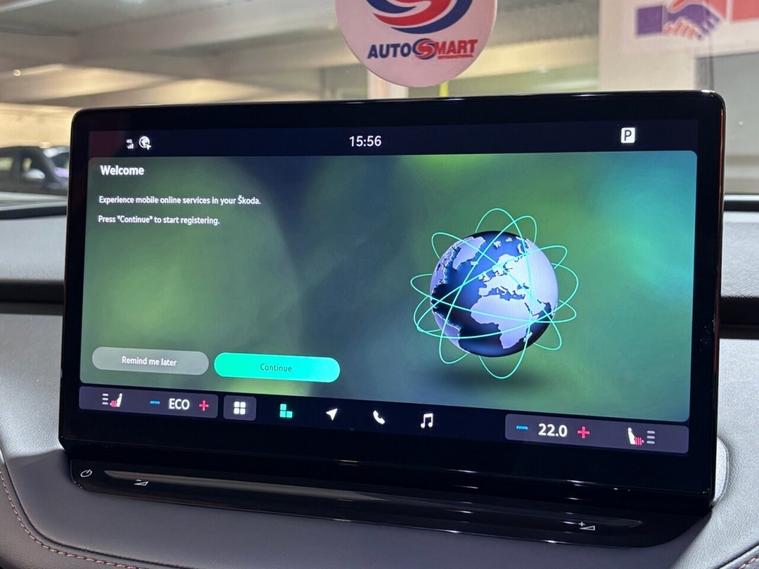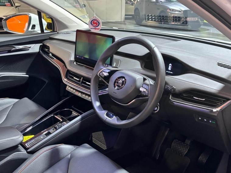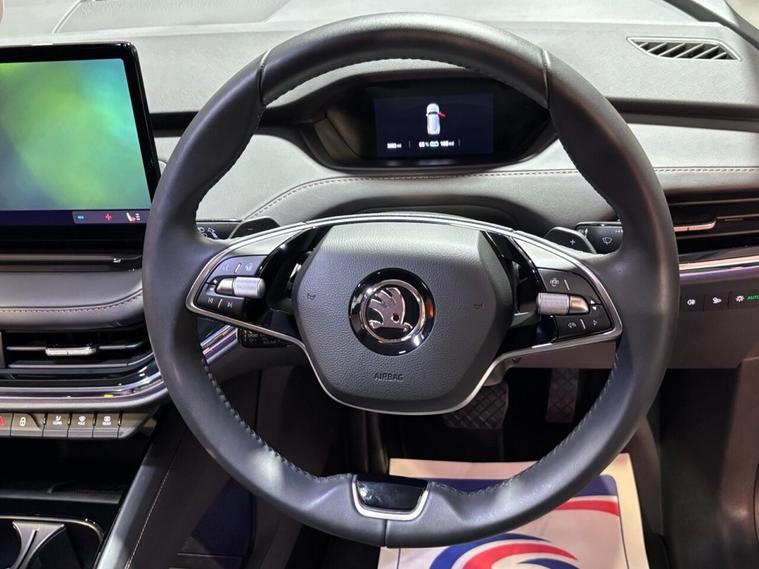 This 2025 Skoda Enyaq 85 Edition presents an exceptional opportunity with an incredibly low mileage of just 853 miles, making it virtually as new. As a single owner vehicle, it boasts a substantial 82 kWh battery offering a maximum range of 365 miles, perfect for both daily commutes and longer journeys. Charging is convenient, with a full charge at home taking approximately 12 hours and 13 minutes on a 7kW charger, while rapid public charging can achieve 80% capacity in as little as 28 minutes. This electric Enyaq also features advanced technology, including Bluetooth connectivity, Full LED Matrix Beam Headlights with Variable Light Distribution, and a Keyless Entry Start-Stop System with Walk Away Locking for effortless access and security. The driving experience is further enhanced by a 2-Spoke Leather Heated Multi-Function Steering Wheel, complete with paddles for selecting recuperation levels, and front and rear parking sensors for added peace of mind. The acceleration of 0-60mph in just 6.5 seconds highlights the responsive and dynamic performance of this electric SUV, setting it apart from many other vehicles in its class. This Skoda Enyaq 85 Edition combines cutting edge electric technology with premium features and outstanding condition, offering a compelling choice for those seeking a sophisticated and efficient driving experience.