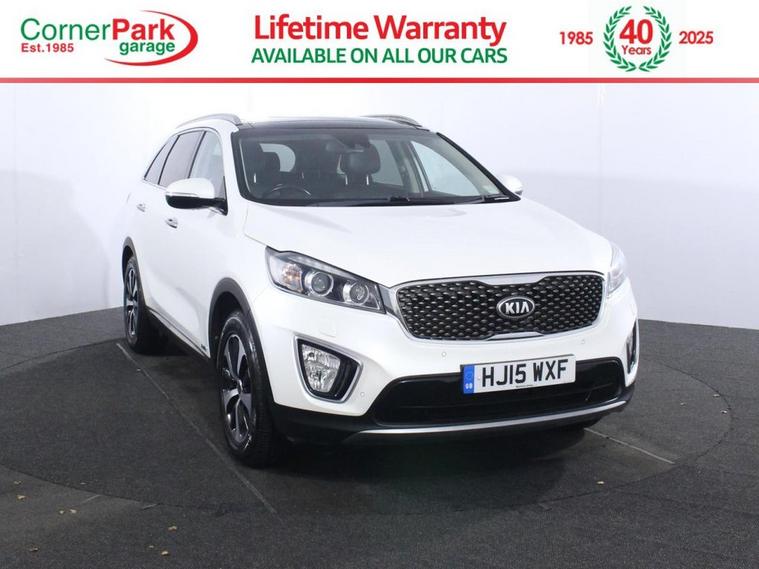 1 Owner. Comprehensive service history with 8 services. Last serviced at 34, 483 miles in April 2025. Introducing the 2015 Kia Sorento 2.2 CRDi KX-3, a spacious and capable 5-door diesel SUV designed for families and adventure seekers alike. Finished in elegant Clear White with 18-inch alloy wheels, body-coloured door mirrors and bumpers, and privacy tinted rear windows, this Euro 6 diesel manual AWD model features a panoramic electric sunroof with safety function and stylish roof rails. The rugged yet refined exterior is complemented by LED daytime running lights, xenon headlights with auto-leveling and washers, and a dark metallic mesh radiator grille. Powered by a robust 2.2-litre CRDi diesel engine producing 197 bhp, the Sorento KX-3 delivers confident performance with a smooth and economical drive. The SUV is packed with premium features including an 8-inch touchscreen satellite navigation system with European mapping, dual automatic climate control with ioniser, heated front and outer rear seats, heated leather-trimmed steering wheel and gear shift, and an Infinity premium sound system with 10 speakers and a subwoofer. Safety enhancements include electronic stability control, lane departure warning system, hill-start assist, tyre pressure monitoring system, and a reversing camera with rear parking sensors. Inside, the versatile cabin offers three rows of seating with 50-50 split flat folding third row and a 60-40 split folding second row, plus power-adjustable drivers seat with lumbar support and memory function. Storage is abundant with multiple cupholders, centre console storage, luggage compartment hooks, cover and net, illuminated scuff plates, and front and rear door storage compartments. Additional convenience is provided by smart key entry, smart power tailgate, rain-sensing wipers, speed limiter, vehicle stability management, and wide-view door mirrors. The 2015 Kia Sorento 2.2 CRDi KX-3 combines luxury, space, and capability for an exceptional SUV experience.