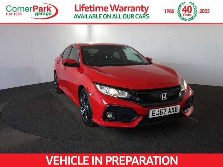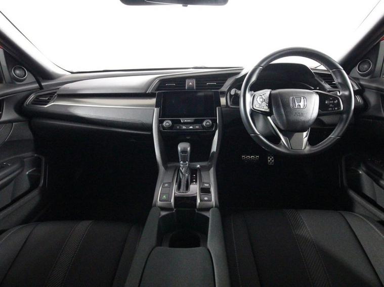 Comprehensive service history with 7 services. Last serviced a 57, 692 miles. Introducing the 2018 Honda Civic 1.0 VTEC Turbo SR Hatchback, a sleek and feature-packed 5-door petrol model engineered for driver enjoyment and modern convenience. Finished with sporty 17-inch alloy wheels, privacy glass, LED daytime running lights, and a distinctive black grille with chrome window garnish surround, this Euro 6 CVT automatic exudes premium style. Its aerodynamic lines, shark fin antenna, and body-coloured door mirrors and handles create a contemporary, refined look. Powered by an efficient 1.0-litre VTEC Turbo petrol engine producing 129ps with paddle shift control, the Civic SR delivers outstanding fuel economy and spirited performanceperfect for both city and motorway driving. The advanced cabin offers Honda CONNECT with GARMIN navigation, dual-zone automatic climate control, adaptive cruise control, Bluetooth handsfree telephone, DAB radio, digital colour display, and ambient LED lighting. Comfort is assured with manual height and power lumbar adjustment for the driver, a sliding centre armrest, and a rear seat armrest with integrated cupholders. Safety and connectivity are top priorities, with features including Collision Mitigation Braking System (CMBS), lane keep assist, forward collision warning, lane departure warning, road departure mitigation, parking sensors front and rear, rear parking camera, ISOFIX points for outer rear seats, and a security alarm system. Convenience highlights include rain-sensing wipers, remote retractable mirrors, multifunction steering wheel, electric windows (one-touch up/down on all doors), super locking, and a capless fuel filler. The 2018 Honda Civic 1.0 VTEC Turbo SR combines efficiency, technology, and safety in a stylish modern hatchback.