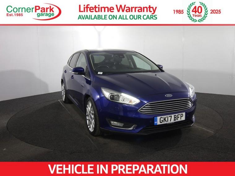 Full service history with 8 services. Last serviced at 70, 619 miles in May 2025. Discover the 2017 Ford Focus 1.0T EcoBoost Titanium X, a sportily styled 5-door petrol hatchback that delivers a perfect blend of performance, efficiency, and premium features. Finished in striking Deep Impact Blue complemented by 17-inch 15-spoke alloy wheels and body-coloured heated, power-folding door mirrors with integrated indicators, this Euro 6 manual model commands attention. Chrome detailing on the upper door line, LED daytime running lights, rear spoiler, and bi-xenon adaptive headlights add to its sophisticated yet dynamic design. Powered by Fords efficient 1.0-litre turbocharged EcoBoost engine, producing 125ps with start-stop technology and drive-enhancing features like torque vectoring control, this Focus offers a spirited yet economical drive. Inside, youll find a premium centre console featuring a sliding armrest with covered storage, leather-trimmed handbrake, heated sports-style front seats with adjustable lumbar support, and a driver-focused 3-spoke leather steering wheel. Stay connected and entertained with the SYNC3 system, 8-inch touchscreen, DAB navigation, and rearview camera, all complemented by a dual-zone electronic climate control system. Safety and convenience are comprehensive with multiple airbags, lane assistance, Intelligent Protection System, electronic stability programme, emergency brake assist, MyKey programmable key, and enhanced active park assist. Additional highlights include quickclear heated windshield with heated jet washers, rain-sensitive wipers, rear parking sensors, remote central double locking, and electric windows with one-touch up/down and global open-close functions. The 2017 Ford Focus Titanium X blends sporty aesthetics, advanced tech, and everyday practicality in a compelling hatchback package for discerning drivers.