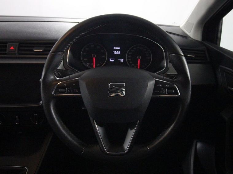 1 Owner. Full service history with 4 services. Last serviced at Discover the 2018 SEAT Ibiza 1.0 TSI SE Technology, a compact and stylish hatchback that combines sporty looks with practical features. Finished in vibrant Midnight Black with 15-inch Enjoy alloy wheels, this Euro 6 manual model boasts a body-coloured grille, door handles, and mirrors, creating a sleek, modern appearance. The car is equipped with LED daytime running lights, front fog lights with cornering function, and tinted rear windows, making it perfect for city driving and everyday use. Powered by a lively 1.0-litre TSI turbo petrol engine delivering 95ps, the Ibiza offers agile handling, low emissions, and excellent fuel economy. Inside, enjoy a bright and connected cabin with a 70-feature media system including digital radio, Bluetooth streaming, and a navigation system. Comfort is enhanced with a six-speaker sound system, multi-coloured ambient lighting, a leather-trimmed steering wheel, and an adjustable drivers seat. The split-folding rear seats and a practical glovebox allow for versatile cargo spaces, ideal for daily adventures. Safety and convenience are key, with features such as an electronic stability control system with emergency brake assist, six airbags including curtain and side airbags, ISOFIX child seat points, hill hold control, LED taillights, and a tyre pressure monitoring system. The Ibiza also includes remote central locking with two folding keys, front and rear reading lights, a rear fog light, and a dimming interior rear-view mirror. The 2018 SEAT Ibiza 1.0 TSI SE Technology is a perfect choice for drivers seeking a stylish, efficient, and feature-packed hatchback.