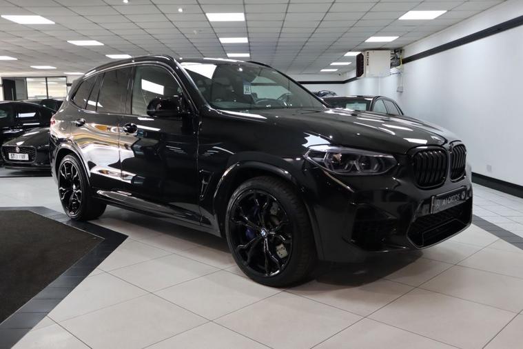 MEGA SPEC X3 M JUST ARRIVED INTO STOCK! ONE FORMER KEEPER FROM NEW COVERING 38K MILES BACKED WITH STUNNING BMW MAIN DEALER SERVICE HISTORY! VERY SOUGHT AFTER EXAMPLE, BE QUICK! FINISHED IN SAPPHIRE BLACK METALLIC! SPEC INCLUDES, TILT/SLIDE PANORAMIC GLASS ROOF, CARBON FIBRE INTERIOR INLAYS, ELECTRIC MEMORY FRONT SEATS WITH ACTIVE VENTILATION, COMFORT PACKAGE, HEATED LEATHER M MULTI FUNCTION STEERING WHEEL, HEAD UP DISPLAY, HARMAN/KARDON PREMIUM SOUND SYSTEM, M SPORTS EXHAUST SYSTEM, GHOST IMMOBILISER, ACOUSTIC COMFORT GLAZING, ADAPTIVE LED HEADLIGHTS, COMFORT ACCESS, M SHADOWLINE WITH EXPANDED SCOPES, FRONT M SPORT SEATS, M SEAT BELTS, DRIVING ASSISTANT, PARKING ASSISTANCE SYSTEM (FRONT/REAR SENSORS INCLUDING REAR VIEW CAMERA), DIGITAL COCKPIT DISPLAY, ELECTRIC TAILGATE, PROFESSIONAL MEDIA PACKAGE WITH NAVIGATION, DAB TUNER, 21 INCH ALLOY WHEELS! RARE, INCREDIBLE EXAMPLE, PANORAMIC ROOF, PAN ROOF, GLASS ROOF, EXCEPTIONAL VALUE FOR MONEY, EARLY VIEWING IS ESSENTIAL TO AVOID DISAPPOINTMENT, VERY BEST COLOUR COMBINATION, COMPREHENSIVE WARRANTY OPTIONS AVAILABLE, AA BREAKDOWN COVER AVAILABLE, STUNNING SHOWROOM CONDITION, MUST BE SEEN NOT TO BE MISSED, BE VERY QUICK THIS GEM WILL SOON GO!, VIEW MORE PICS ON OUR WEBSITE, PLEASE CALL FOR FULL SPEC, SIMPLY STUNNING!