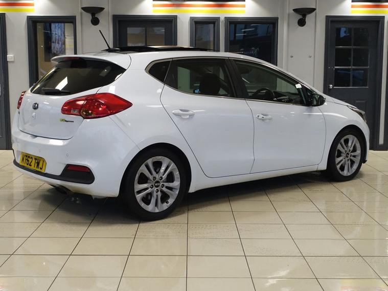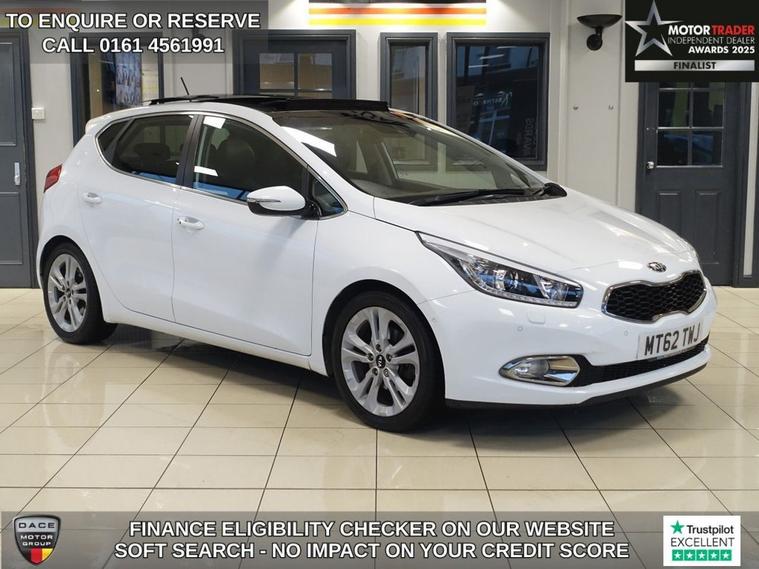 FINISHED IN STUNNING FUSION WHITE, COMPLIMENTED WITH BLACK HEATED, LEATHER ELECTRICALLY ADJUSTABLE SEATS WITH MEMORY FUNCTION + EXCEPTIONALLY WELL CARED FOR, TOP SPECIFICATION, DIESEL HATCHBACK - 1 OWNER FROM NEW, COMES WITH A FULL KIA MAIN DEALER SERVICE HISTORY + PANORAMIC SLIDING GLASS SUNROOF + SATELLITE NAVIGATION + REAR VIEW CAMERA + BLUETOOTH MEDIA AND PHONE CONNECTIVITY + CRUISE CONTROL + DUAL ZONE CLIMATE CONTROL + AIR CONDITIONING + IN CAR ENTERTAINMENT WITH TOUCH SCREEN MEDIA DISPLAY + HILL HOLD START ASSIST + ECO STOP START SYSTEM + AUTOMATIC BI XENON HEADLIGHTS + FRONT AND REAR PARKING SENSORS + LANE ASSIST + LED DAYTIME RUNNING LIGHTS + KEYLESS START + HEATED LEATHER MULTIFUNCTIONAL STEERING WHEEL WITH PADDLE SHIFT GEAR SELECT + VOICE COMMAND + AUTOMATIC WIPERS WITH RAIN SENSOR + ELECTRIC HEATED POWER FOLDING DOOR MIRRORS + ELECTRIC WINDOWS + PRIVACY GLASS + 60/40 SPLIT FOLDING REAR SEATS + 17 INCH ALLOY WHEELS.... ***NOT SURE YOURE ELIGIBLE FOR CAR FINANCE? CHECK TODAY USING THE FREE CAR FINANCE CHECKER ON OUR WEBSITE.*** Dace Motor Group have a dedicated team of finance experts waiting to help with your enquiry. Over the past 30 years we have forged relationships with the countrys largest and best finance houses. We are specialists in Hire Purchase (HP), Personal Contract Purchase (PCP) as well as assisting those with poor credit or previous credit problems. ------------ABOUT US------------ At Dace Specialist Car Centre Stockport, we are very proud to have been named the first Trading Standards Approved Car Retailer, with process and procedures developed with and applauded by them. We do recommend that customers RESERVE their choice of vehicle prior to making their trip to avoid potentially missing it. Visit our website https:/ dealer's website At Dace Specialist Car Centre Stockport we carry 700 cars in group stock. - TO ENQUIRE OR RESERVE PLEASE CALL 01616232961 - ------------WARRANTY------------ With effect from the 1st May 2024 the Warranty Solutions Group will be providing their highest level of national warranty cover on all of our cars + 3 MONTHS WARRANTY FREE + EXTENDED WARRANTIES AVAILABLE + ------------ADVERT ACCURACY------------ Although we make effort to ensure the description of our vehicles is accurate, mistakes can happen. We are human after all! So, whether it is the exact specification of a vehicle you need clarifying, the service history dates and mileages, even the colour shade please speak to a member of our sales team and they will happily confirm all you need to know about this car. PLEASE NOTE our adverts can never be cited as the reason you have brought a car incorrectly, as no purchase can be completed without the customer physically examining the car. As such, the physical viewing and documentation provided for the vehicle is deemed to be the basis for the sale, not an advertisement that may on occasion contain an error.