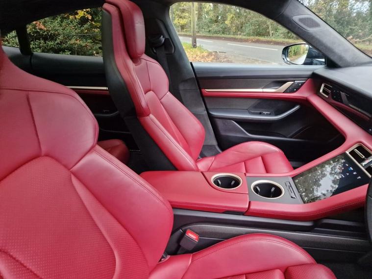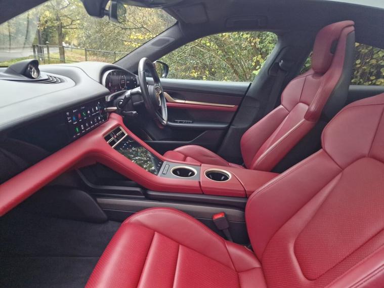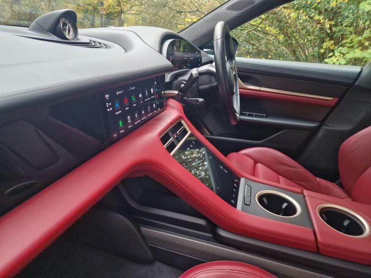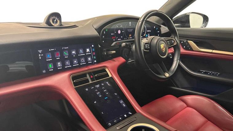 This Taycan Turbo S is a 1 owner car with full Service history at Porsche. This car is VAT QUALIFYING. Looks great in black exterior with two red and black leather interior. Great options which include Panoramic roof, Carbon SportDesign Package, Burmester 3D High-End Surround Sound System, Porsche InnoDrive including Adaptive Cruise Control, Privacy glass, Ambient lighting, Night View Assist, Porsche Dynamic Chassis Control Sport (PDCC Sport), Head-Up Display, 4+1 Seats, Electric folding exterior mirrors, Heated GT sports steering wheel in leather, Windscreen with grey top-tint, 150kW DC on-board booster, Accent Package Neodyme, 21-inch RS Spyder Design wheels, Trim B-Pillars Race-Tex, Panoramic Roof with Variable Light Control, Climate, SatNav, Cruise Control, CD Player, Alloys, Leather, Park Assist, Aircon, Heated Seats. This car is in beautiful condition both inside and out and must be seen to be appreciated. Speak to our sales team Directly or WhatsApp Message on 01992692459 for any enquiries or to discuss part exchange valuations. Xclusive Xports are a used car dealership based in Bayford Hertfordshire, SG13 8PZ. Specialising in UK sales as well as export of vehicles, upon request. Established since 2008, with a wide range of used vehicles to suit all budgets and lifestyles, we are sure to have the right car for you. VIEWINGS ONLY BY APPOINTMENT 7 DAYS A WEEK. As an APPROVED AA CAR DEALERSHIP all vehicles are HPI CHECKED & PROVIDED WITH A 12 MONTHS FREE AA BREAKDOWN COVER. Visit our website dealer's website for GREAT FINANCE OPTIONS & TO APPLY ONLINE. Delivery is available throughout the UK, upon request. In addition, we provide a WARRANTY for total peace of mind which can be extended. PART EXCHANGE WELCOME. Please contact us for further information, and check out our 5 STAR REVIEWS. BUY IN CONFIDENCE