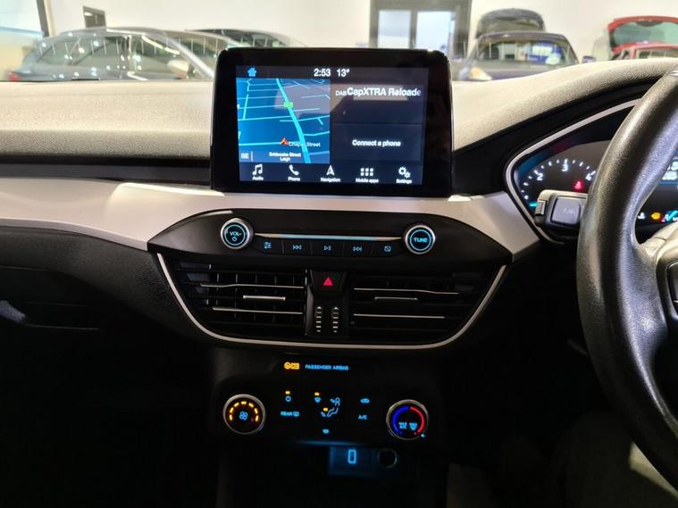 Superb value for money drives like its done half the miles, only two owners from new service history and a long MOT until July 2026! Superb spec with navigation, car play, USB, DAB radio, cruise control, auto lights, LED daytime lights, huge boot space, superb on fuel, euro 6 and much more. This 2019 Ford Focus Zetec offers excellent peace of mind with its MOT valid until July 2026 and a clear vehicle history check. This 1.5L diesel model, meeting Euro 6 emission standards, is equipped with automatic headlights that switch on and off as needed, and manual air conditioning to keep you comfortable. Inside, youll find the Ford SYNC system featuring an 8 inch TFT touchscreen, The Ford Focus Zetec stands out with its impressive fuel economy, achieving up to 63 miles per gallon, which is a significant advantage for running costs compared to many other vehicles. Its low CO2 emissions also contribute to its economical profile. Furthermore, this Focus benefits from a low insurance group, making it a more affordable choice for many drivers. These factors combined demonstrate how this particular Ford Focus Zetec offers a more economical and cost effective ownership experience.