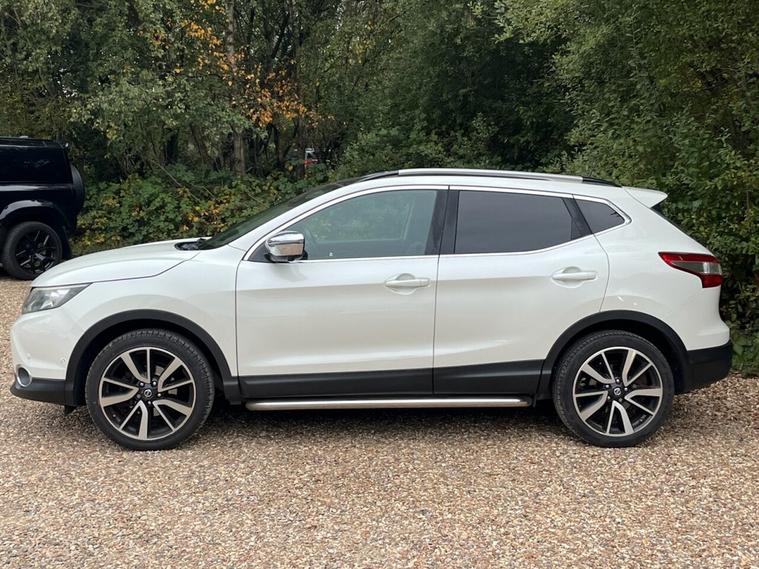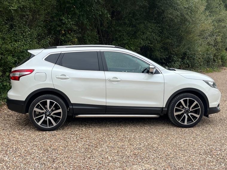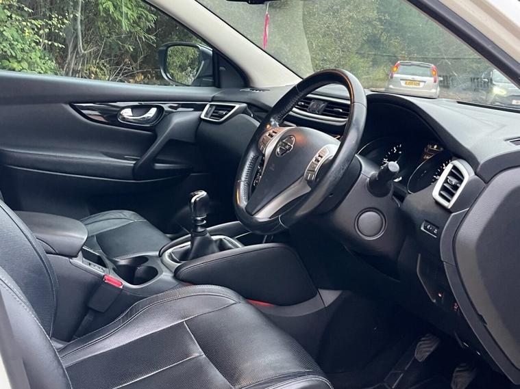Here we have a Nissan Qashqai Tekna finished in white Equipped with sat nav, reverse camera, cruise control, panoramic roof, electric seats, heated seats, full leather. Call us today to arrange a test drive