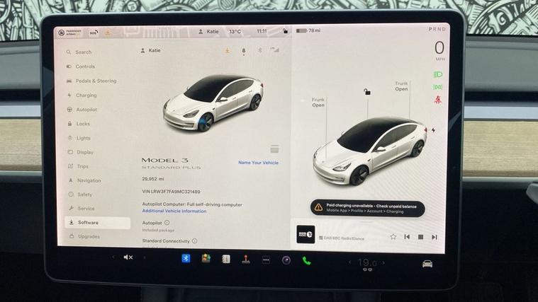 This 2021 Tesla Model 3 Standard Range Plus presents an exceptional ownership proposition, having been meticulously maintained by its sole owner and boasting remarkably low mileage for its age at just 29, 950 miles. As an all electric vehicle, it offers an impressive battery total capacity of 53 kWh, providing a maximum range of 278 miles when new. This Model 3 is equipped with advanced features including front and rear parking sensors for effortless manoeuvring, adaptive cruise control for relaxed journeys, and bright LED headlights. Connectivity is also a breeze with its integrated Bluetooth system. The convenience of this electric Tesla is further enhanced by its charging capabilities. A full charge at home using a 7kW charger takes approximately 7 hours and 10 minutes, ideal for overnight top ups. For longer trips, rapid charging to 80% from empty can be achieved in as little as 29 minutes at a public charging station. Beyond its technological advancements, this Model 3 also offers substantial practicality with its large boot space, making it a versatile choice for everyday use and weekend adventures, setting it apart from many other vehicles in its class.