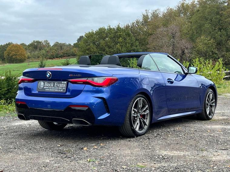 VAT QUALIYING. NATIONWIDE DELIVERY AND CLICK AND COLLECT Available. Here At Beck Evans We Are Proud To Introduce This Stunning BMW 4 Series M440i XDrive MHEV Convertible, A True Masterpiece On Wheels. With Only One Company Owner From New and Comes With BMW Main Dealer Service History, LOW MILEAGE. This Vehicle is Finished in Portimao Blue Metallic with Full Black Vernasca Leather Seats With Blue Stitching, Heated Front Seats, Satellite Navigation, Reversing Camera With Parking Assist Sensors Front and Rear, DAB Radio, Smartphone Integration with Apple Carplay, Bluetooth, Phone Prep, Dual Zone Automatic Climate Control Air Conditioning, Leather Multifunction Steering Wheel, Automatic Lights, Rain Sensors, M Sport Brakes With Red Calipers, 19 Inch M Double Spoke Alloy Wheels, Sport Automatic Transmission, Variable Sport Steering, Sensatec Dashboard, M Sport Differential, M Adaptive Suspension, M Sport Seats Belts, Ambient Lighting, Live Cockpit Pro With Head Up Display, Auto Dimming Rear View Mirror, Parking Assistant, Cruise Control with Speed Limiter, M Sport Leather Steering Wheel, High Gloss Shadowline Exterior Trim, M Sport Exterior Styling, Dynamic Stability Control Plus, Agility Select, Adaptive LED Headlights, Keyless Entry with Keyless Go, Anthracite Headlining, M Sport Exterior Styling, Voice Activated Controls, Isofix Rear Seats, Remote Central Locking, Alarm, Experience the perfect blend of style, performance, and luxury with the BMW 4 Series. Don't miss your chance to own this exceptional vehicle. Contact us today to schedule a test drive and make this beauty yours. Additional fees may apply, please note, not all cars are kept on site please call to make appointment and to avoid disappointment. pre delivery check, This vehicle will be sold with the benefit of A Optional 24 MONTH EXTENDED WARRANTY WITH MAIN DEALER LABOUR RATES, charged at an additional 1299. Hpi Checked, Part Exchanges Welcome. Low Rate Finance/PCP Finance Options Available, Over 100 Cars and Up To 50 pictures Available Visit Our Website dealer's website call now Tel: 02030182143 USED CAR DEALERS 2022 WINNERS, VAT QUALIFYING, VAT RECLAIMABLE FOR EXPORT AND BUSINESS USE ONLY.