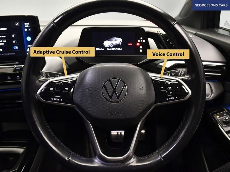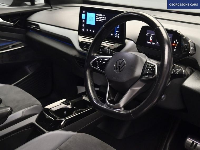 This Volkswagen ID.4 Pro Performance 77kWh Life combines an efficient electric motor with 286hp, delivering 0-62mph in 6.2 seconds and up to 331 miles of WLTP range in this rear-wheel-drive setup with a smooth single-speed automatic transmission. The Life trim offers a refined blend of style and tech with a spacious interior for practical EV family motoring. With one owner and four services, this ID.4 is in excellent condition. Ambient lighting creates a sophisticated interior atmosphere, while integrated satellite navigation, Apple CarPlay, Bluetooth, and DAB radio ensure seamless connectivity on every journey. Parking is a breeze thanks to the reverse camera and parking sensors, providing clear visibility and confidence in tight spaces. Stay comfortable with dual-zone climate control, heated seats, and a heated steering wheel, offering personalized warmth year-round. Adaptive cruise control with speed limiter enhances safety and relaxation on highways. The push-button start adds daily convenience, while selectable drive modes provide tailored performance, whether for efficiency or dynamic driving. The spacious five-door SUV design includes a 543-litre boot for practicality. Contact us today to test drive this premium electric SUV!