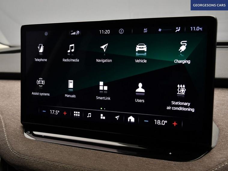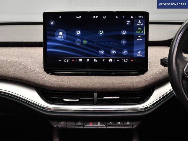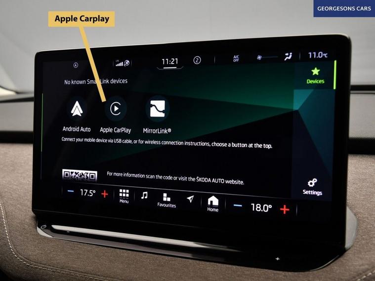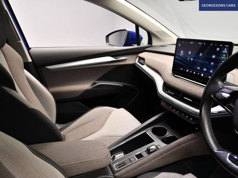 The Skoda Enyaq 62kWh 60 combines an efficient electric motor with 179hp, delivering 0-62mph in 8.5 seconds and up to 249 miles WLTP range in this rear-wheel-drive setup with a smooth single-speed automatic transmission. The 60 trim offers practical style with a spacious interior for versatile family EV motoring. With 1 owner and 2 services, this Enyaq is in excellent condition. Enjoy the panoramic roof for an airy cabin feel, while integrated satellite navigation, Apple CarPlay, Bluetooth, and DAB radio ensure seamless connectivity. Parking is effortless with reverse camera and parking sensors. Stay comfortable with dual-zone climate control. Lane assist and hill assist enhance safety on every journey. Push-button start adds convenience. The spacious five-door SUV design includes a 585-litre boot for practicality.