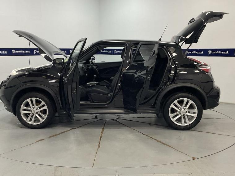 FULL SERVICE HISTORY, NISSAN INFOTAINMENT SYSTEM FEATURING SAT NAV, BLUETOOTH PHONE AND MEDIA, DAB RADIO, AIR CON WITH CLIMATE CONTROL, 17 ALLOY WHEELS, PRIVACY GLASS, COLOUR REVERSE CAMERA PARKING AID, ALCANTARA LEATHER, DAY TIME RUNNING LIGHTS, CRUISE CONTROL, FLEXIBLE MONTHLY PAYMENTS AVAILABLE ON THIS CAR. This 2018 Nissan Juke DIG-T Bose Personal Edition finished in Pearl black metallic offers excellent value. This stylish hatchback is equipped with a 1.2 litre petrol engine and meets Euro 6 emissions standards. Inside, youll find the impressive BOSE Personal Sound System for an enhanced audio experience, alongside Intelligent Key with a push button start and keyless entry for ultimate convenience. The Juke also features automatic climate control with a pollen filter and automatic headlights that activate with a dusk sensor, ensuring comfort and visibility in all conditions. For easier parking, a colour reversing camera is also included. This particular Nissan Juke DIG-T Bose Personal Edition stands out with its impressive fuel economy, achieving up to 50 miles per gallon, which indicates it is more economical than many similar vehicles. Furthermore, its low CO2 emissions and low insurance group highlight its cost effectiveness for everyday driving, making it a sensible choice for many owners. Supplied with HPI report and vehicle book pack. THIS CAR IS AA APPROVED AND SOLD WITH A 145 POINT AA INSPECTION CERTIFICATE AND A NATIONWIDE PARTS AND LABOUR WARRANTY, SAME DAY DRIVE AWAY AVAILABLE ON ALL AA INSPECTED CARS. WE OFFER WITH ALL OF OUR CARS A BRONZE, SILVER AND GOLD PROTECTION PACKAGE WHICH INCLUDES A 145 POINT AA INSPECTION, NATIONWIDE ALL MECHANICAL AND ALL ELECTRICAL WARRANTY, AA BREAKDOWN COVER, 12 MONTHS MOT TOP UP VOUCHER, GARDEX SANITIZATION, HPI GOLD CHECK AND COURTESY CAR AVAILABILITY FROM £299. WE ALSO OFFER ALL TYPES OF FINANCE. 3 YEAR PARTS / LABOUR WARRANTY AND SERVICE PLANS AVAILABLE ON ALL AA INSPECTED CARS.
