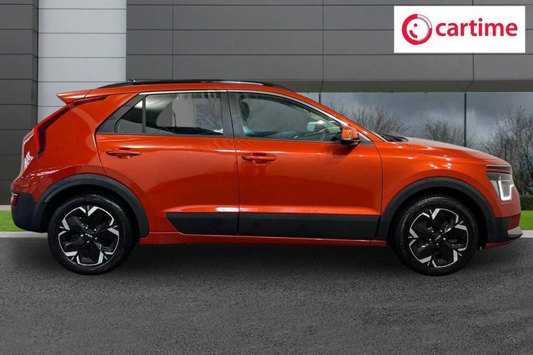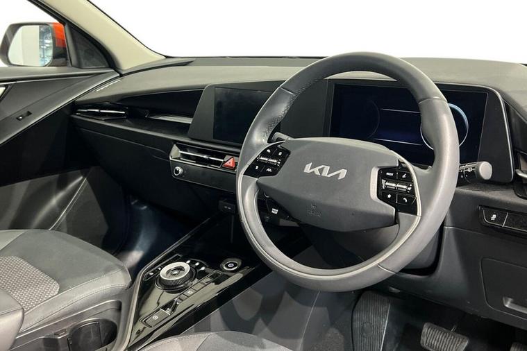 This 2022 Kia Niro 2 is a superb example, boasting a clear vehicle history check and having had only one owner since new. As an electric model, it offers a substantial battery total capacity of 68 kWh, providing a maximum range of 285 miles when new. This impressive electric vehicle also features a convenient Engine Start-Stop Button with Smart Entry System for keyless entry, dual LED headlights for excellent visibility, and seamless integration with Android Auto and Apple CarPlay, all controllable via voice command. The Kia Niro 2 ensures a comfortable journey with its dual temperature control and automatic headlight activation. Charging is efficient, with a full charge at home taking approximately 9 hours and 25 minutes using a 7kW charger, and a rapid charge from empty to 80% achievable in just 43 minutes at a public charging station. The large boot space offers practicality for all your needs, and with its MOT valid until September 2026, this electric Kia Niro 2 presents a compelling choice for those seeking an efficient and well equipped vehicle.