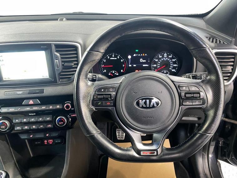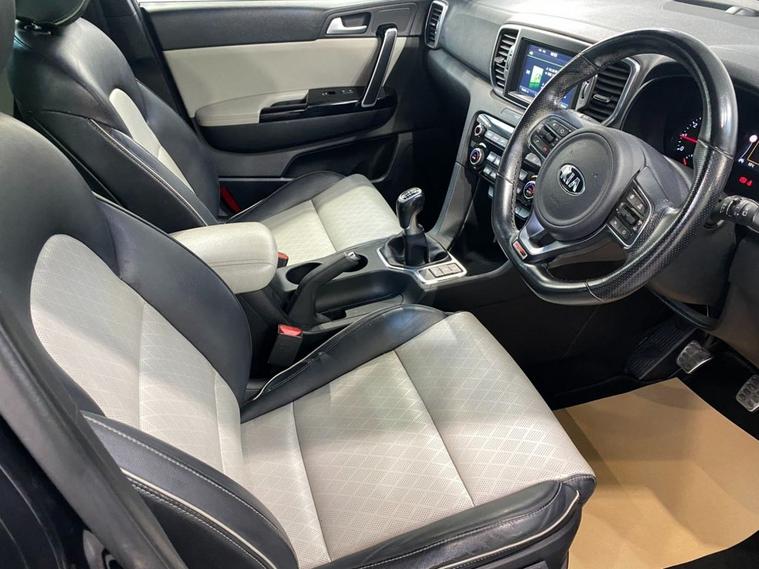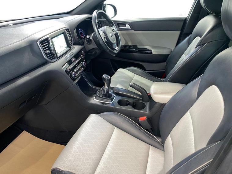 Sharp looks, an impresseive level of equipment and acres of passenger space make this reliable Sportage a great choice as your next family-friendly SUV. Its perfectly adept at city driving and equally at home on the motorway with the solid 1.6 petrol engine providing a huge 174 Bhp and its ULEZ complant so wont attract any congestion charges. City driving is a breeze with a smooth, light 6 speed manual gearbox and a capable 4WD system will get you moving in all conditions. Its fully colour coded in Phantom Black Pearl and stands on clean 19 diamond cut alloy wheels - a rear spoiler, privacy glass and some smart chrome detailing complete the sporty appearance. Moving inside the incredibly roomy cabin you find comfortable seating trimmed in 2-tone leather with the front seats benefitting from 3-stage electric heating. The touch-screen media system incorporates navigation, Bluetooth connectivity, DAB radio, Apple CarPlay and when reverse gear is engaged, a rear parking camera. Theres also front and rear park sensors and if you find yourself off the beaten track theres hill descent control. Cruise, audio and telephone can be safely and easily accessed via the leather multi-function steering wheel.
