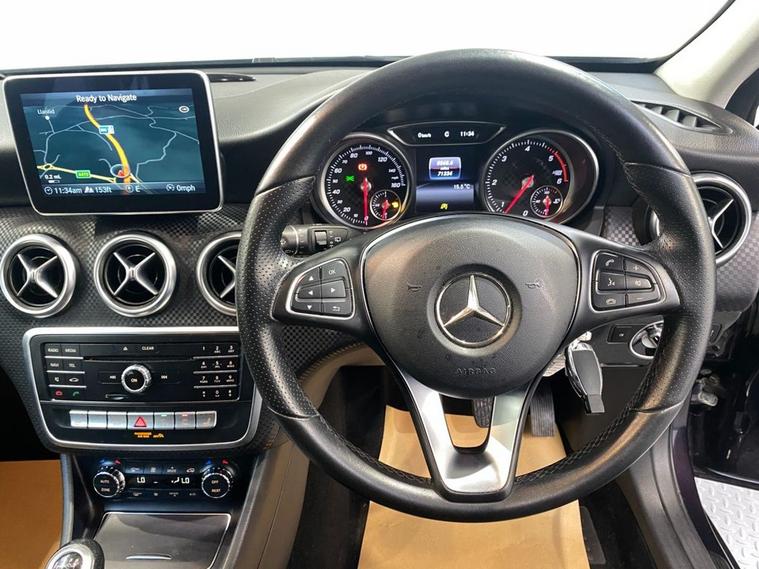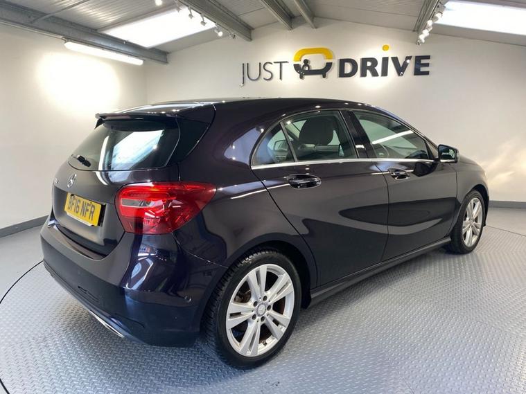 This premium hatchback provides a smooth, refined driving experience with wind and road noise almost imperceptible from within the confines of the reassuringly expensive-feeling cabin. Its finished in Northern Lights Violet metallic and comes with 17 alloy wheels together with a high level rear spoiler - its a classy package. Passenger space and comfort levels are first class with plenty of room for three adults in the rear. The extendable sports seats are trimmed in Artico leather-effect upholstery and have 3-stage electric heating - perfect for the colder weather. The A Class also has navigation, dual zone climate control, front / rear Parktronic with camera, a CD system and automatic headlights. Audio and Bluetooth phone connection are easily accessed via the leather multi-function steering wheel. Its highly economical too with the reliable 2.1 diesel engine capable of up to 78 mpg and annual road tax is just £35. The mileage is very sensible for a 2016 model at just over 71, 000 and this is backed up with detailed service history.