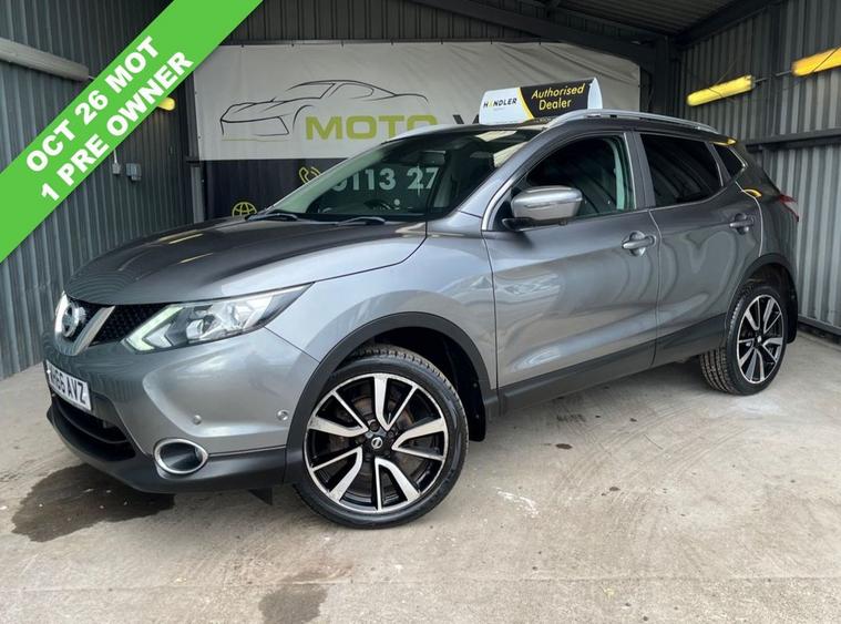 Moto Vation Car Sales are offering this Nissan Qashqai in a desirable colour- Grey with full Black leather interior and a Panoramic roof. Low miles for the age- 75K and with only 1 owner from new, it is clear it has been loved. Would make a great family car or for anyone looking for a bigger space. Supplied with a Oct 26 Mot and Full Service History attached with 9 stamps- last in our service centre in 10/25. Bosting a great specification including a Multi Functional Steering Wheel, AUX, USB, 19 Alloys, Traffic Sign Recognition, Push Button Start, Bluetooth, Cruise Control, 18 Alloys, Auto Headlights, Sat Nav, Park Assist, Keyless Entry, Reverse Camera, Electric Heated Seats and Isofix. Please confirm with a Sales Executive how many keys this car comes with. £195 annual tax. All of our vehicles come with a 3 months Nationwide warranty and a 12 months basic AA breakdown cover. Please read our reviews! Please note- the above vehicle specification is confirmed and correct. The vehicle specification listed elsewhere may sometimes be inaccurate so please check with the Sales team when enquiring to clarify this prior to purchase.