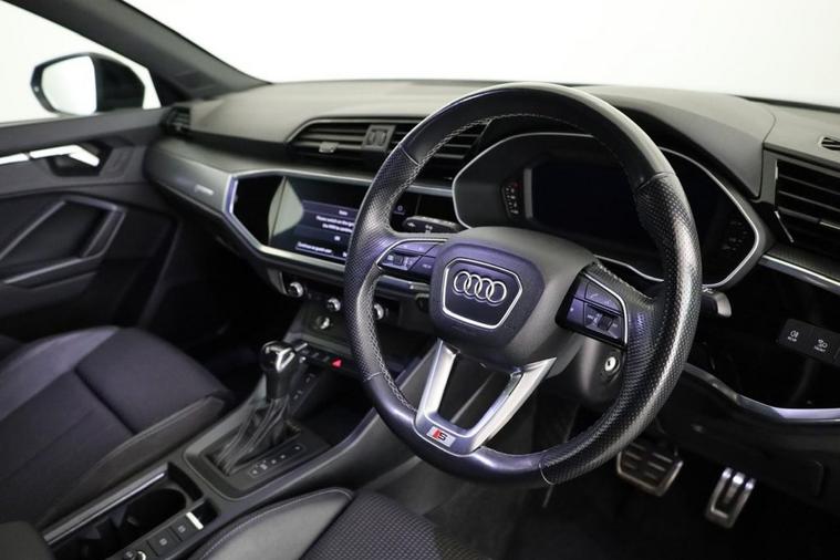 - 3-Spoke Leather Multi-Function Steering Wheel - S Badging and Grips in Perforated Leather with Contrast Stitching